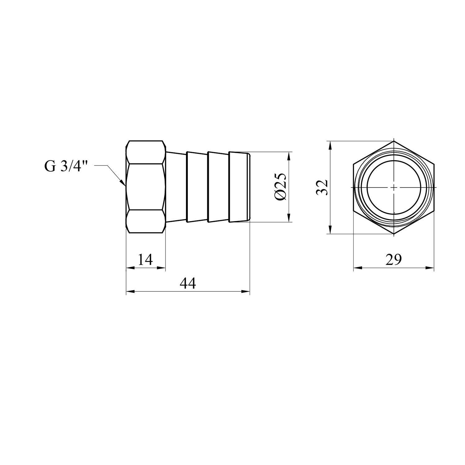 Описание Штуцер Karro 3/4 РВ никелированный, D=25 мм, KR-820 код товару CV024635