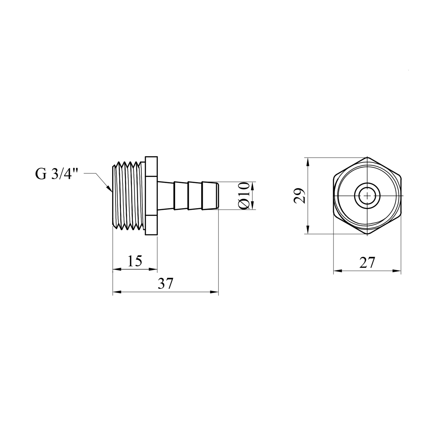 Описание Штуцер LexLine 3/4", D=10 мм, латунный УК0009-0 код товару CV029103