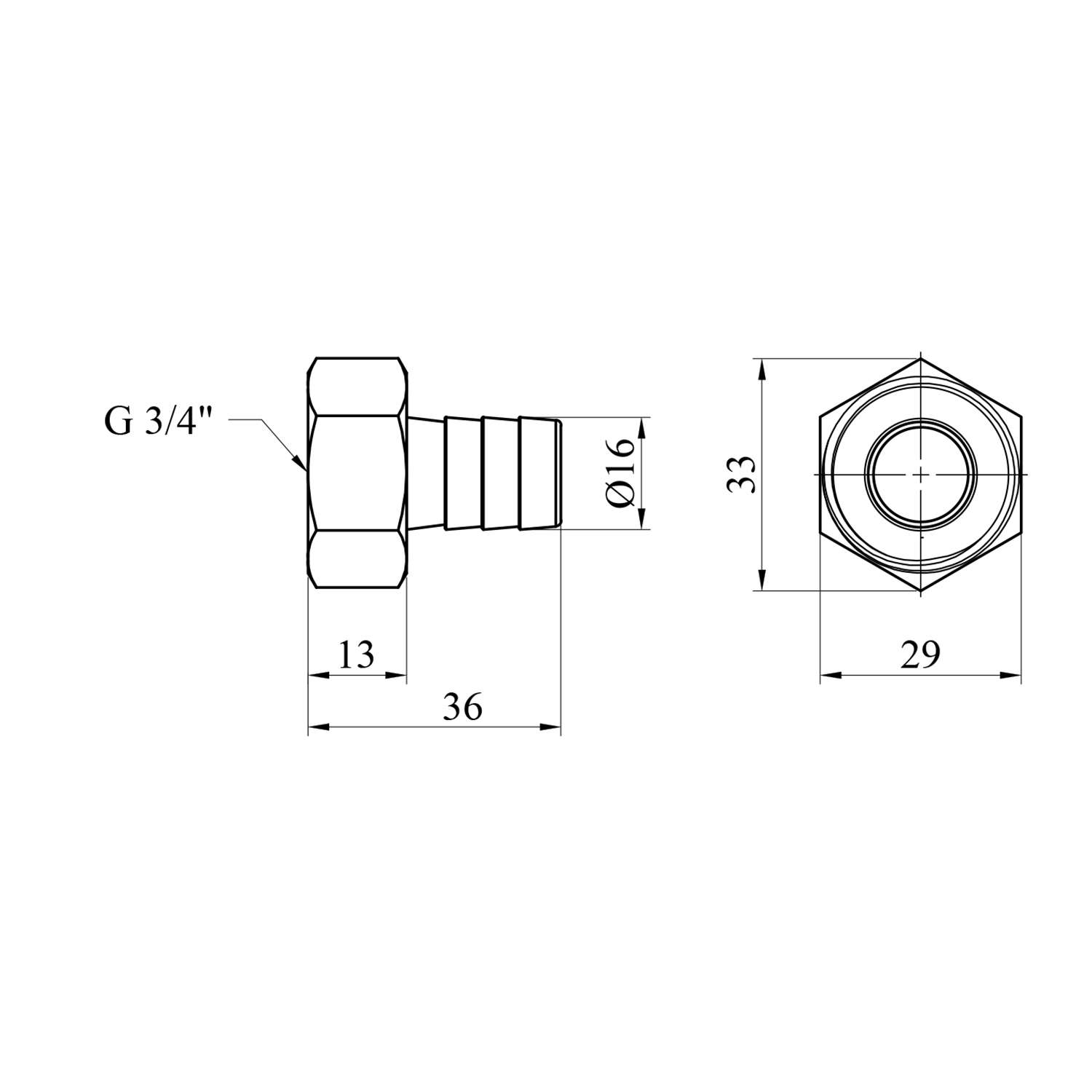 Характеристики Штуцер LexLine 3/4 РВ латунный D=16 мм УК0003-1 код товару CV029091