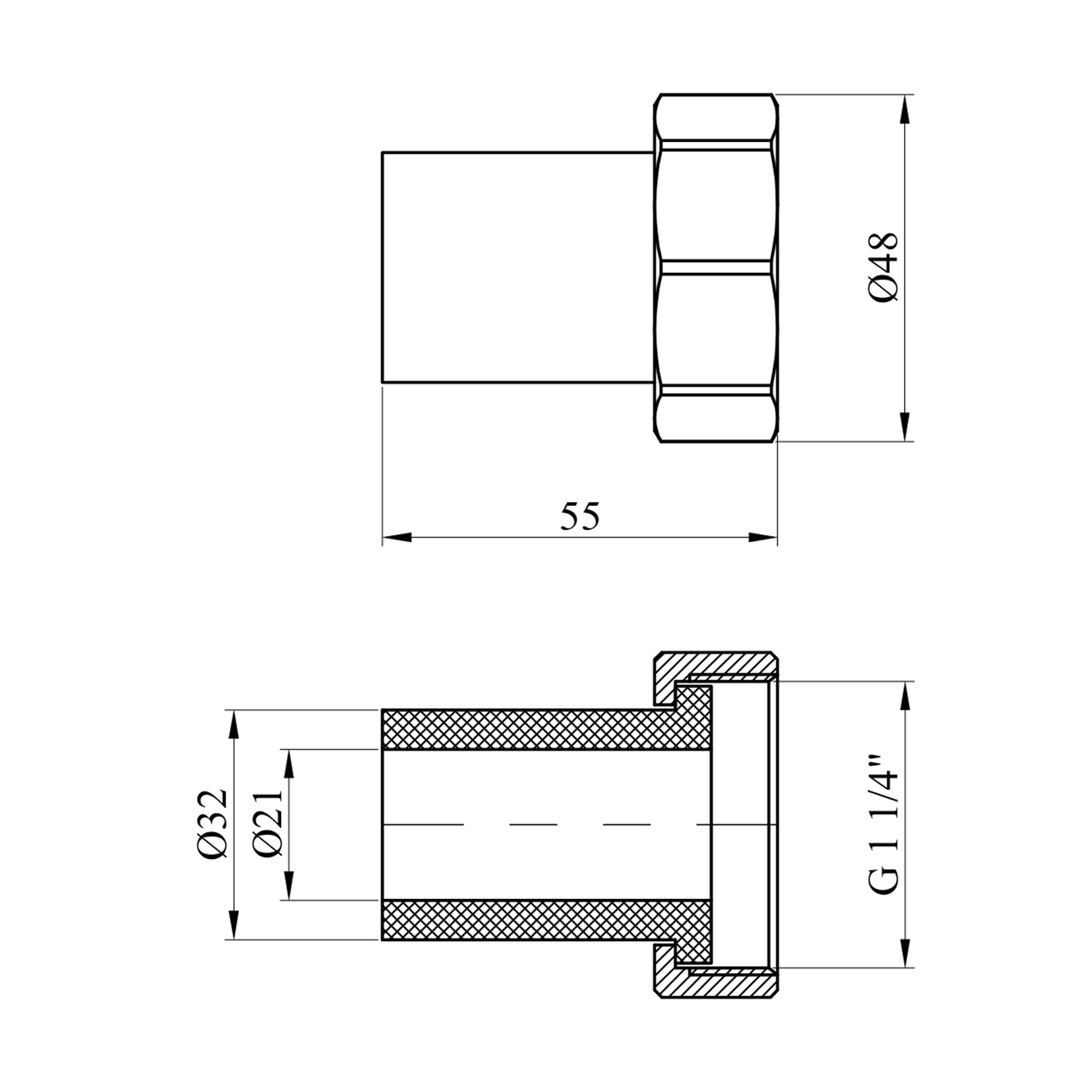 Описание Штуцер PPR Rozma 32х1 1/4 с накидной гайкой код товару CV010263