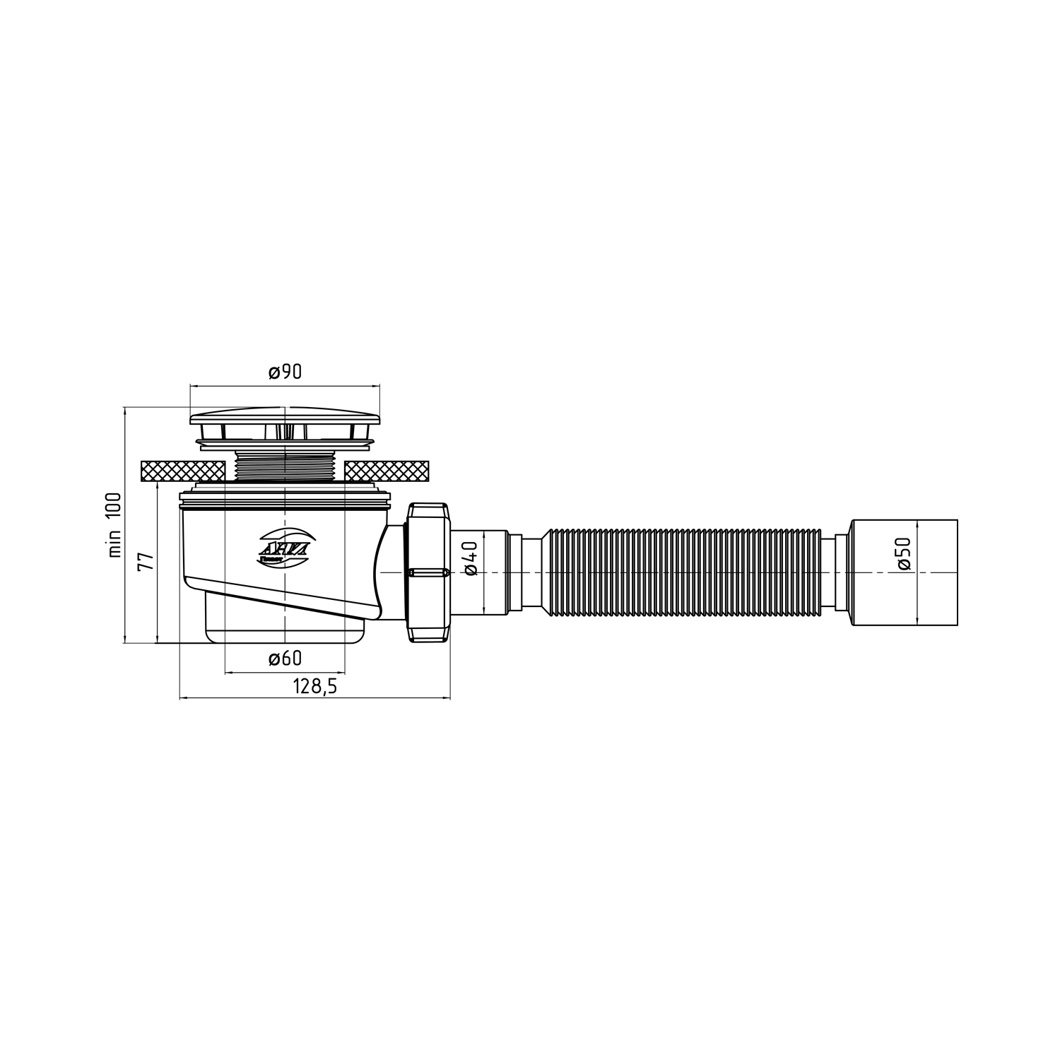 Характеристики Сифон душевой ANIplast 1 1/2" с гибкой трубой 40х40/50 E515CEU код товару CV025359