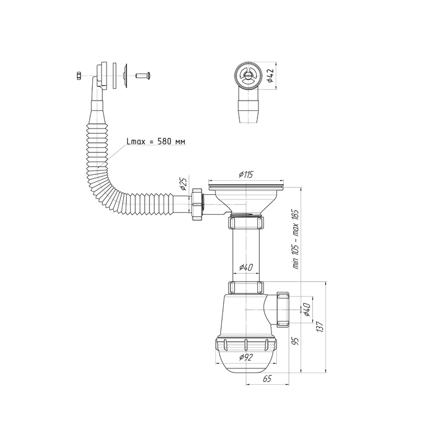 Сифон, который не подведет. Простота установки, надежность в эксплуатации. Пластик, который не боится воды. Круглый перелив, чтобы избежать переполнения. Идеально подходит для кухонных моек. Легкость в уходе, минимальные хлопоты.