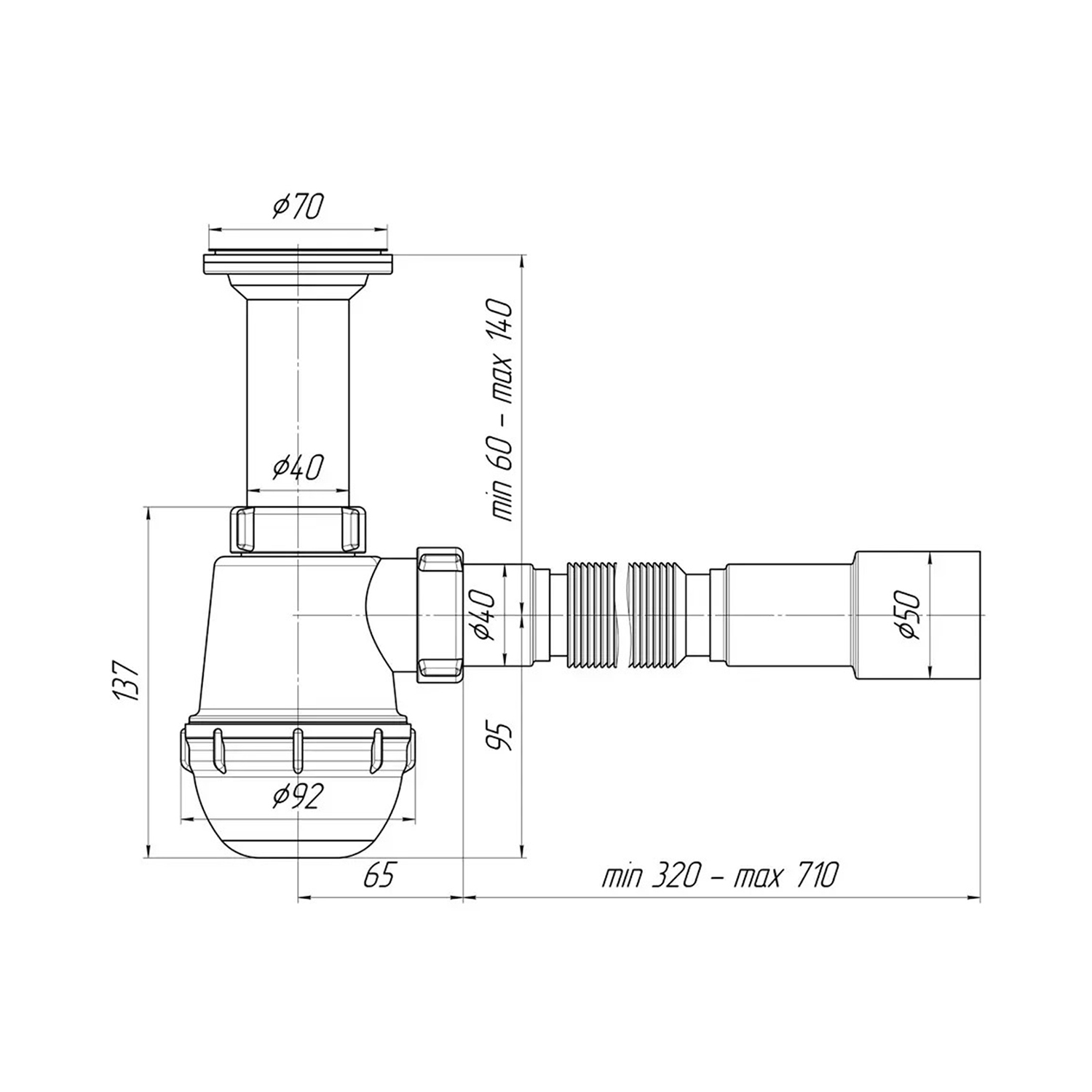 Характеристики Сифон ANIplast 70 мм с гибкой трубой 40х40/50 мм С0515EU код товару CV017089