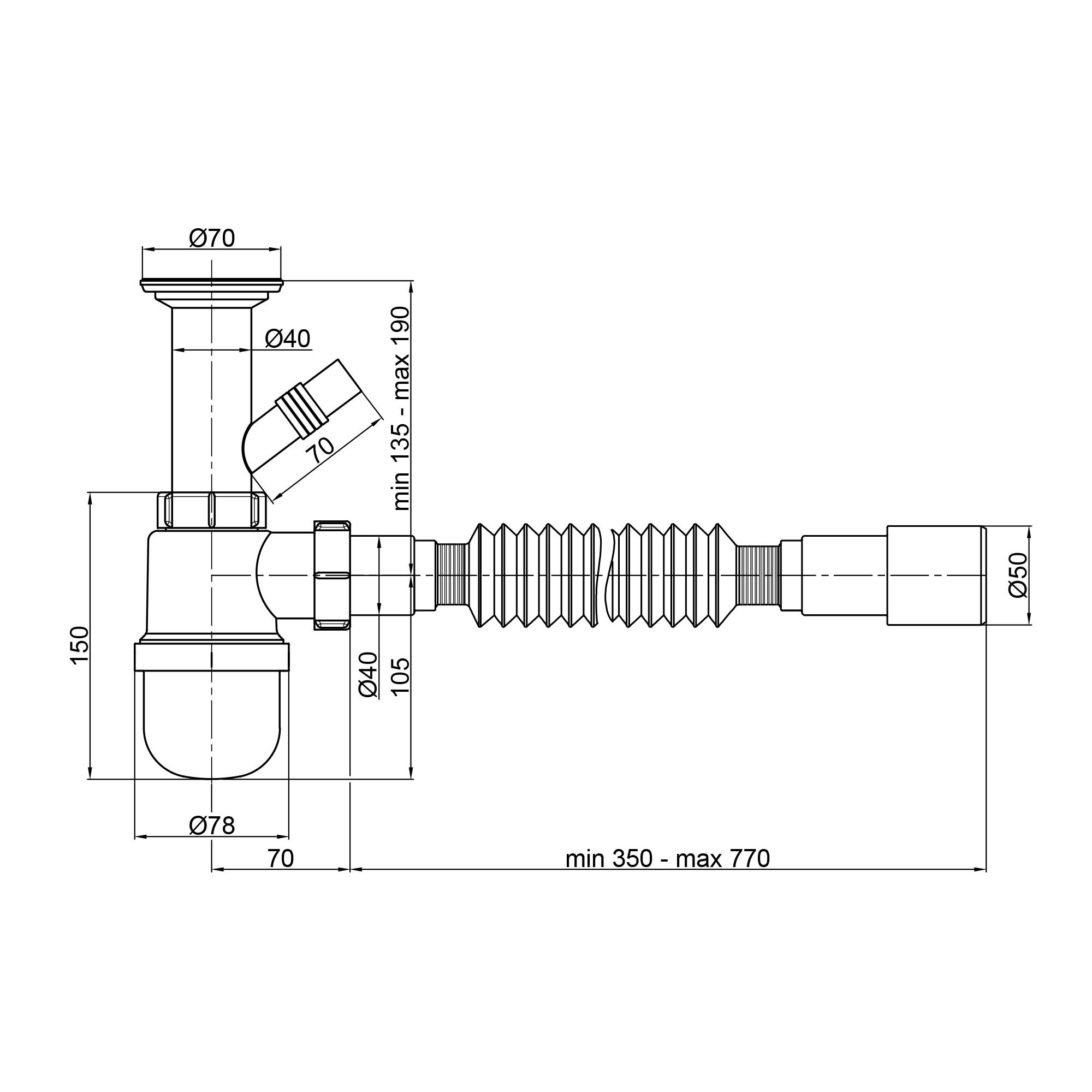 Характеристики Сифон для раковины Lidz с отводом для стиральной машины 50 мм код товару SD00042762