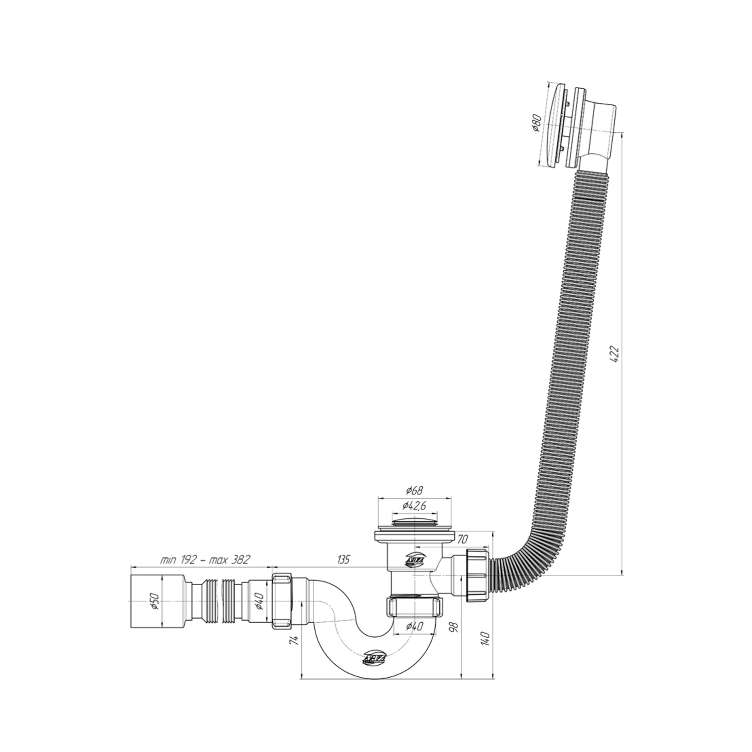 Описание Сифон для ванной ANIplast 1 1/2" с системой Click-Slack 50 мм код товару CV016718