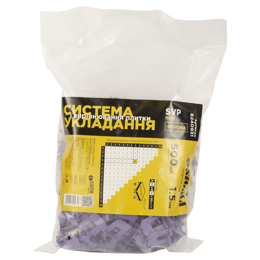 Система укладки и выравнивания плитки SVP Mini основание 1.5 мм 500шт SIGMA код товару 8240931 Sigma