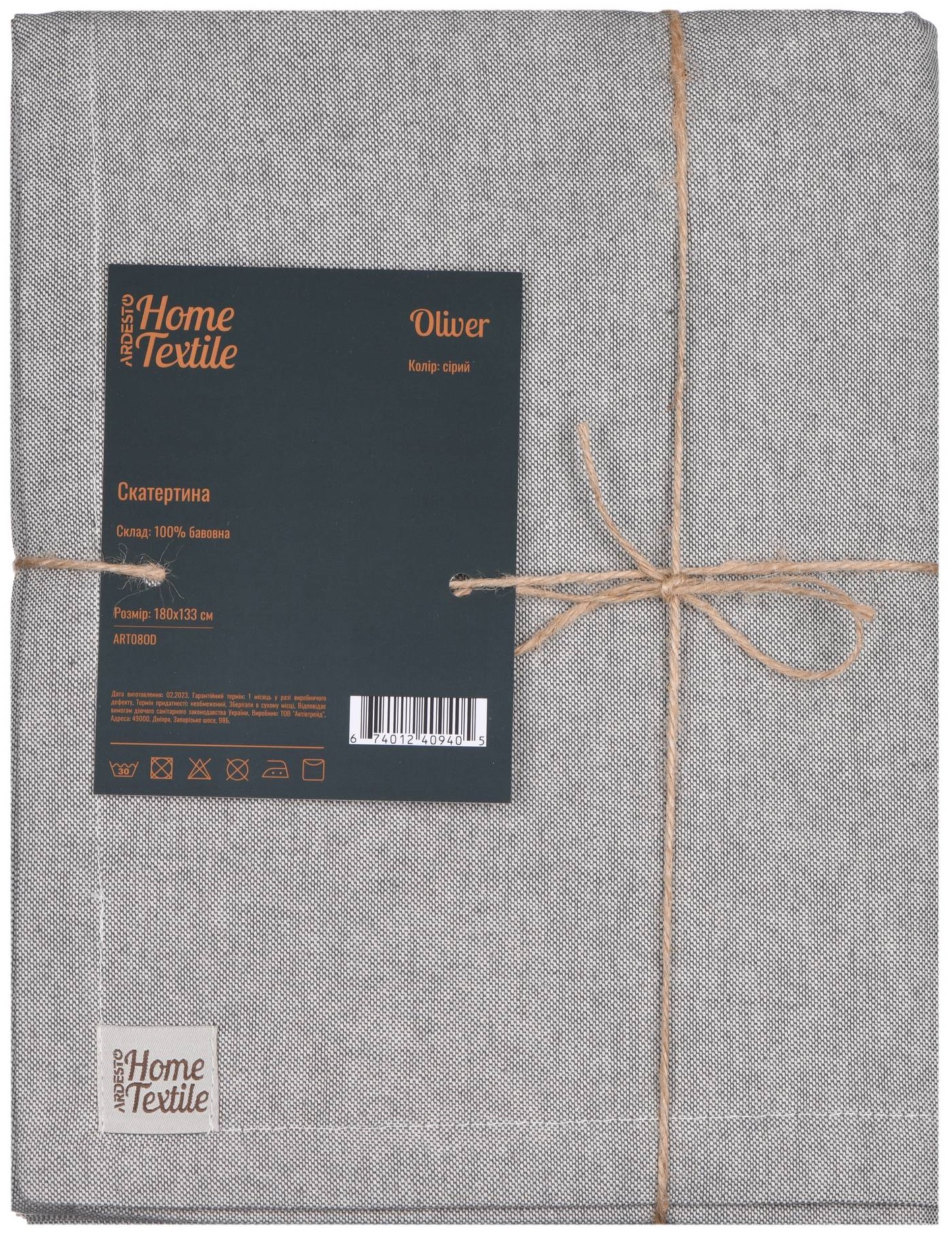 Характеристики Скатертина ARDESTO Oliver, 133х180см, 100% бавовна, сірий код товару ART08OD
