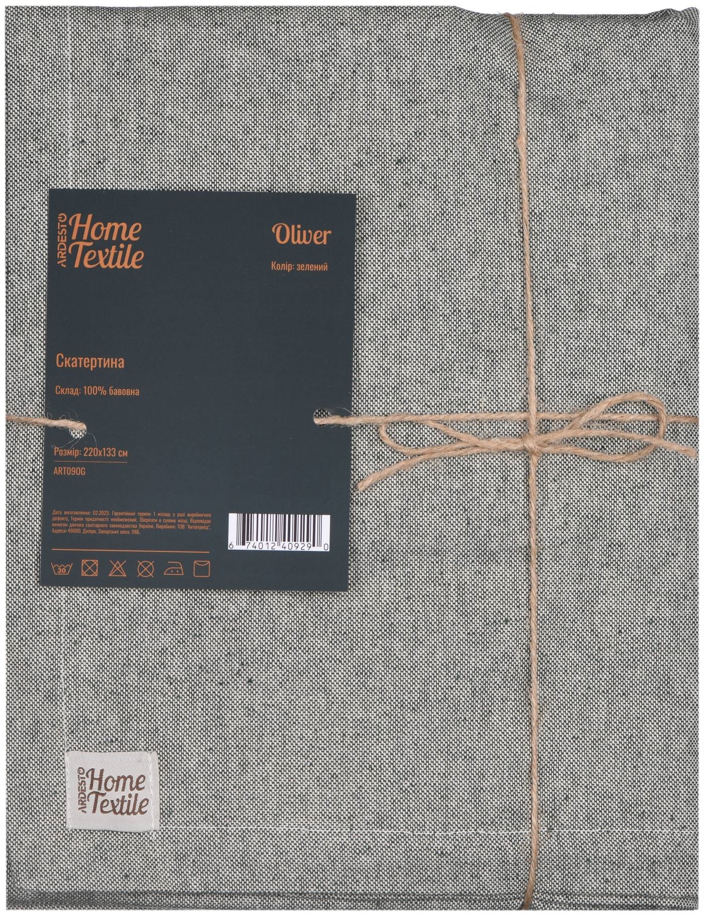 Характеристики Скатертина ARDESTO Oliver, 133х220см, 100% бавовна, зелений код товару ART09OG