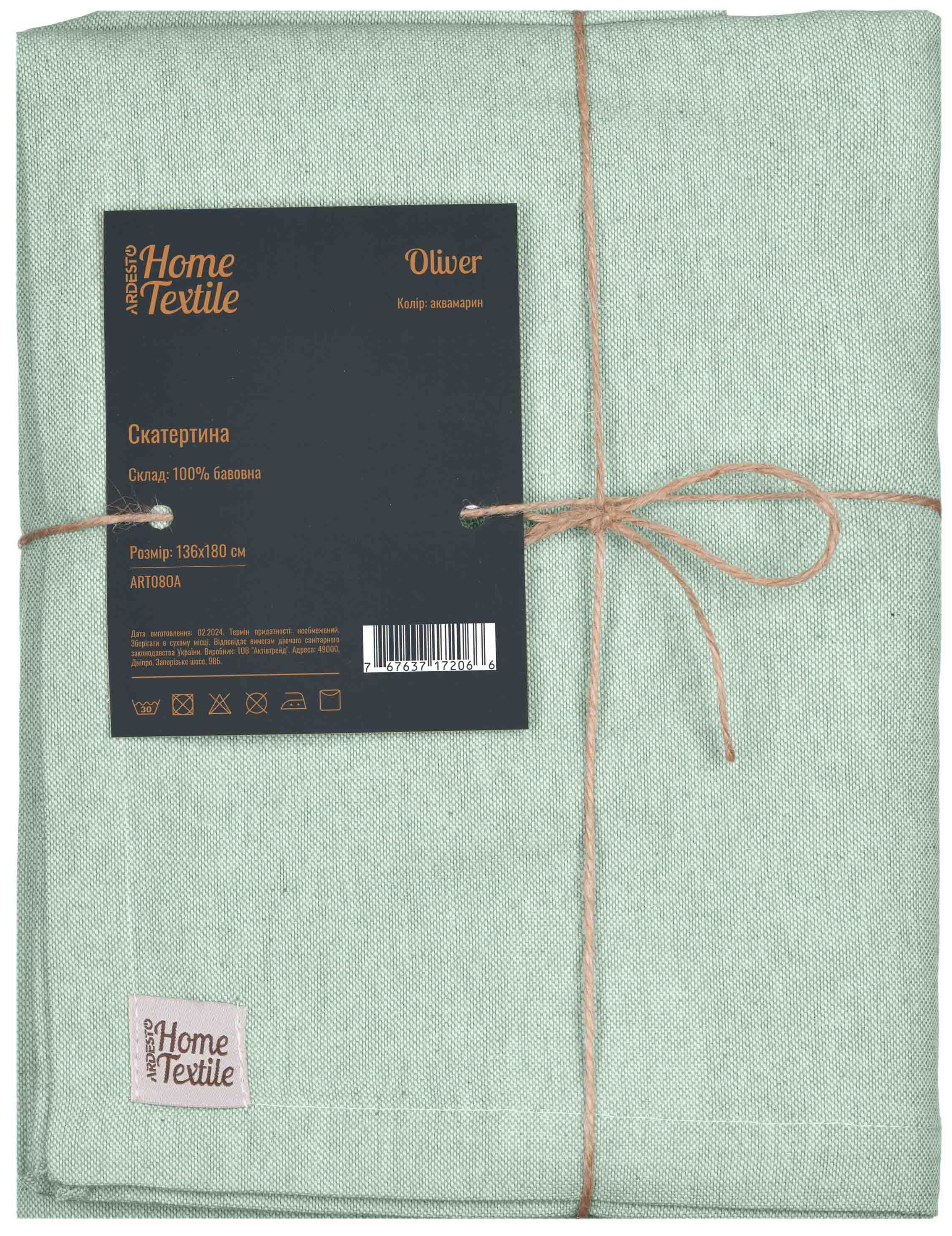 Характеристики Скатертина ARDESTO Oliver, 136х180см, 100% бавовна, аквамарин код товару ART08OA