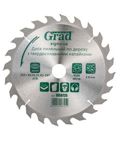 Артикул1958725 Обробка сталь (Н/мм2)32 Угол заточки15° град Толщина пропила дисковой пилы2 Толщина диска, мм1.5 Толщина1.5 Твердость88 HRC Размер зубцаL - 5 мм; l - 1.7 мм; b1 - 2.5 мм; w1 - 15±5°; w2 - 15±1° Официальная гарантияОт производителя Назначение пильного дискаДВП, Дерево, Фанера, ДСП, МДФ БрендGrad Масса, кг0.600 Максимальные обороты, об/мин4500 Кратность1 Количество зубьев, шт.40 Количество зубьев24, 40 Диаметр теста250 Диаметр диска, мм250