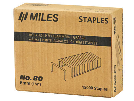 Характеристики Скоби Miles No. 80, 5000 шт., 6 мм, 0,95 мм х 0,65 мм, 12,90 мм х 11,40 мм код товару No. 80-14MM