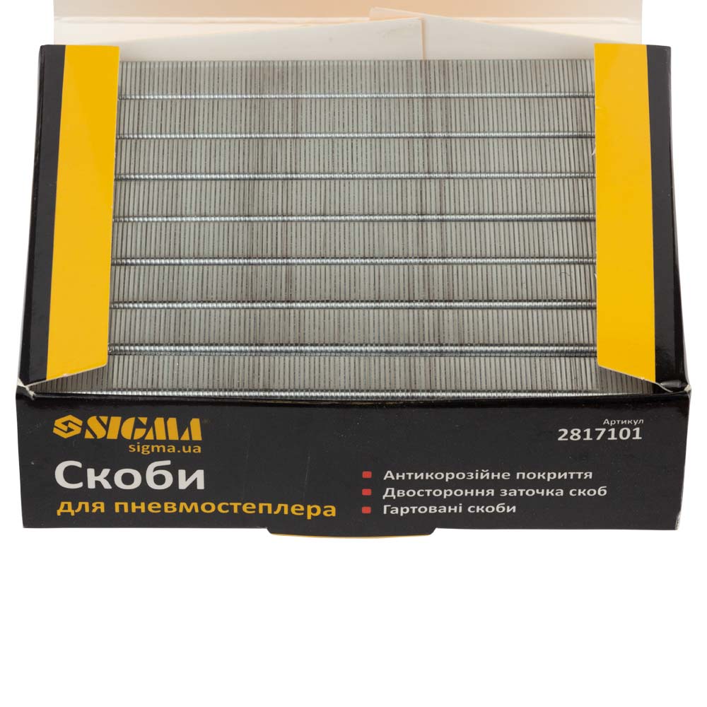 Описание Скобы 10×12.8мм для пневмостеплера SIGMA, 5000 шт (2817101) код товару 2817101