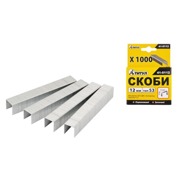 Описание Скобы ТИТУЛ 12 мм 1000 шт код товару 41-0112