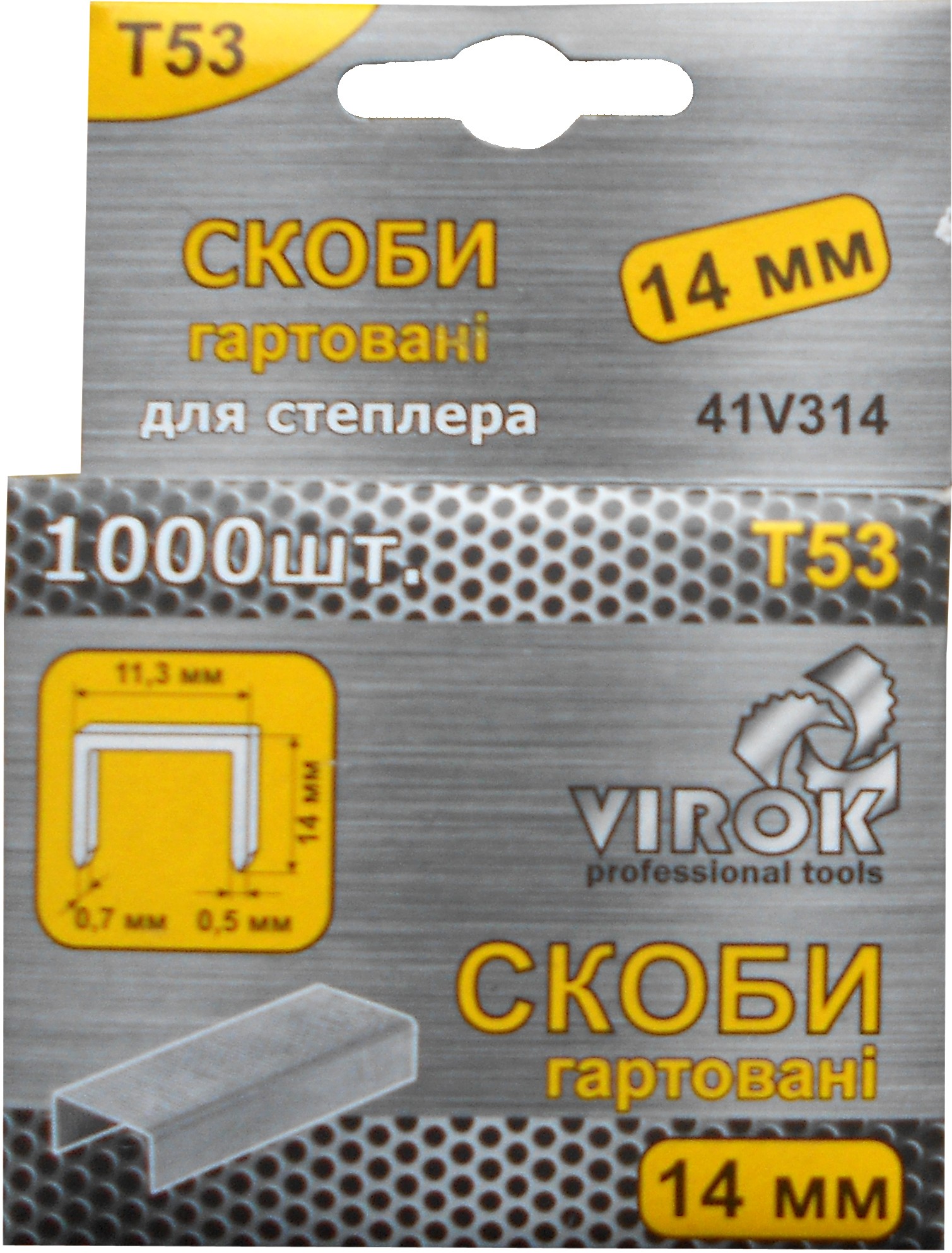 Характеристики Закаленные скобы VIROK Т53 14 мм 1000 шт код товару 41V314