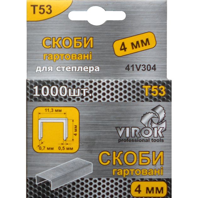 Характеристики Закаленные скобы VIROK Т53 4 мм 1000 шт код товару 41V304
