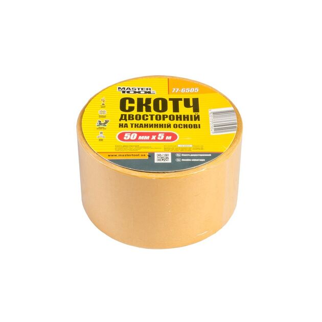 Двусторонний скотч на тканевой основе MASTERTOOL 50 мм 5 м код товару 77-6505 Master Tool, Mastertool