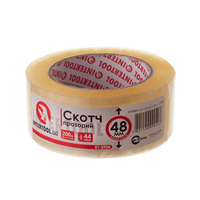 Описание Скотч прозрачный 48мм*200м INTERTOOL KT-0904 код товару KT-0904