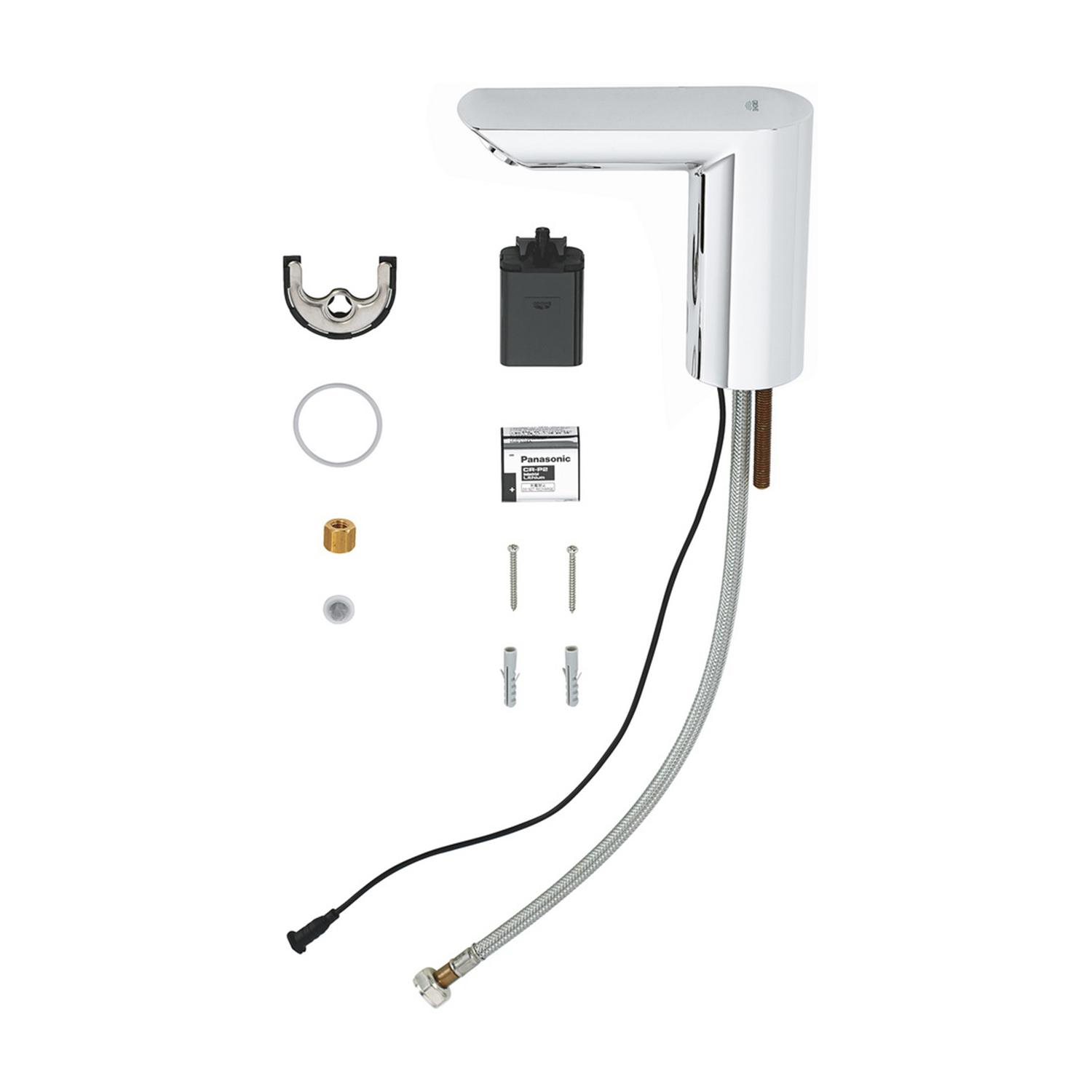 Смеситель питается от литиевой батареи 6 В (тип CR-P2), рассчитанной примерно на 7 лет службы при стандартной нагрузке (150 срабатываний в день). Хромированное покрытие GROHE Long-Life Shine® легко очищается и сохраняет блеск на долгие годы.