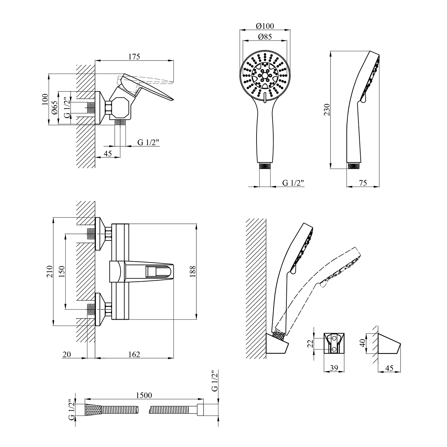 - Тип установки: настенный