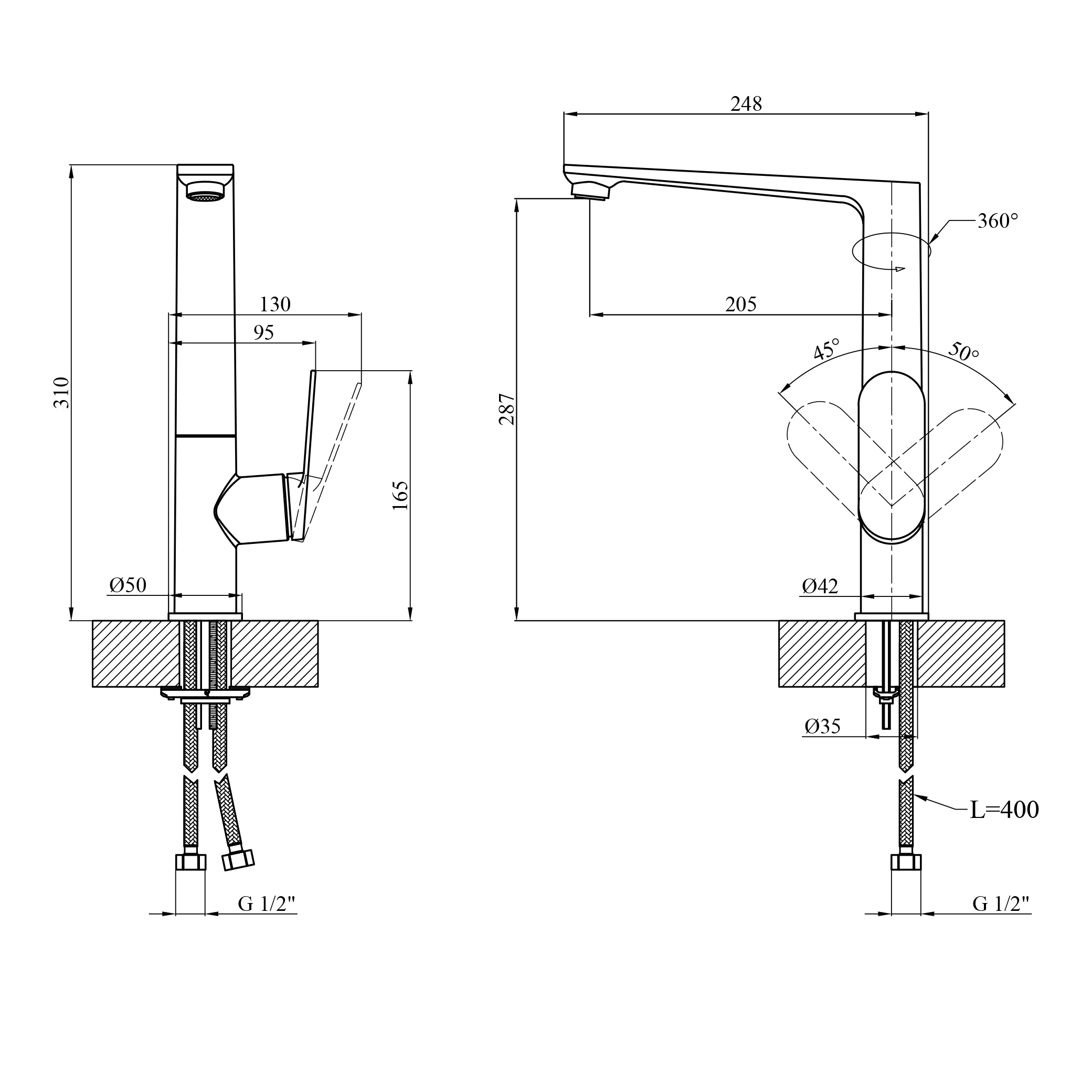 - Корпус из латуни Н59. Картридж SEDAL - Испания. Аэратор Neoperl - Германия. Гибкое подведение Tucai - Испания.