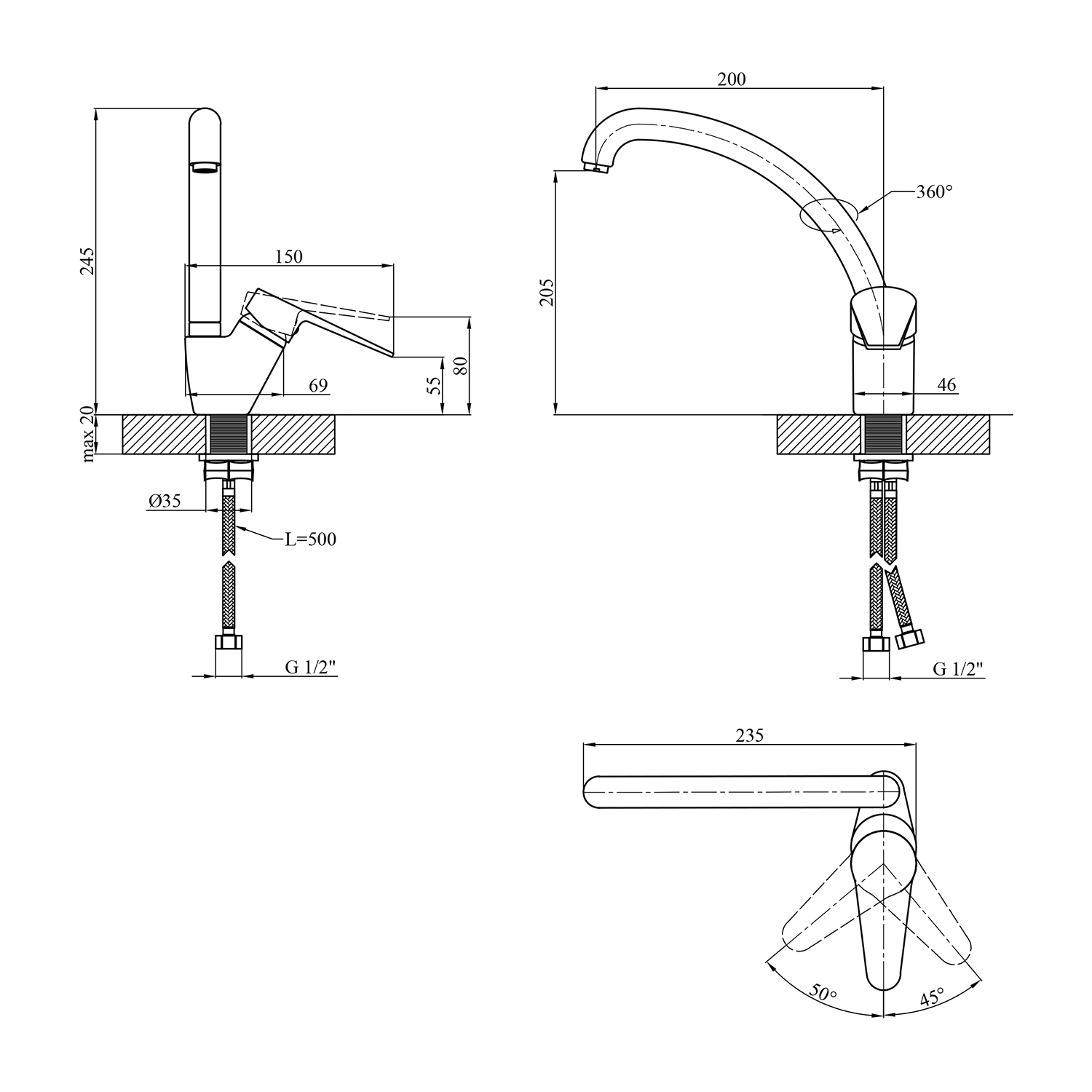 Простой в установке, он легко впишется в любой интерьер. Удобный рычаг управления — для точной регулировки температуры и напора воды. Надежность и долговечность — залог вашего комфорта.