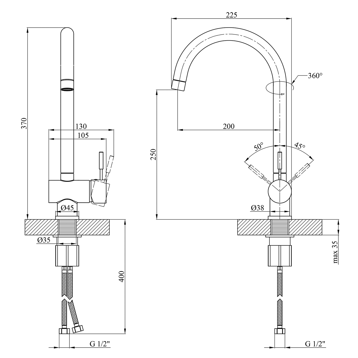 - Высота излива: 200 мм