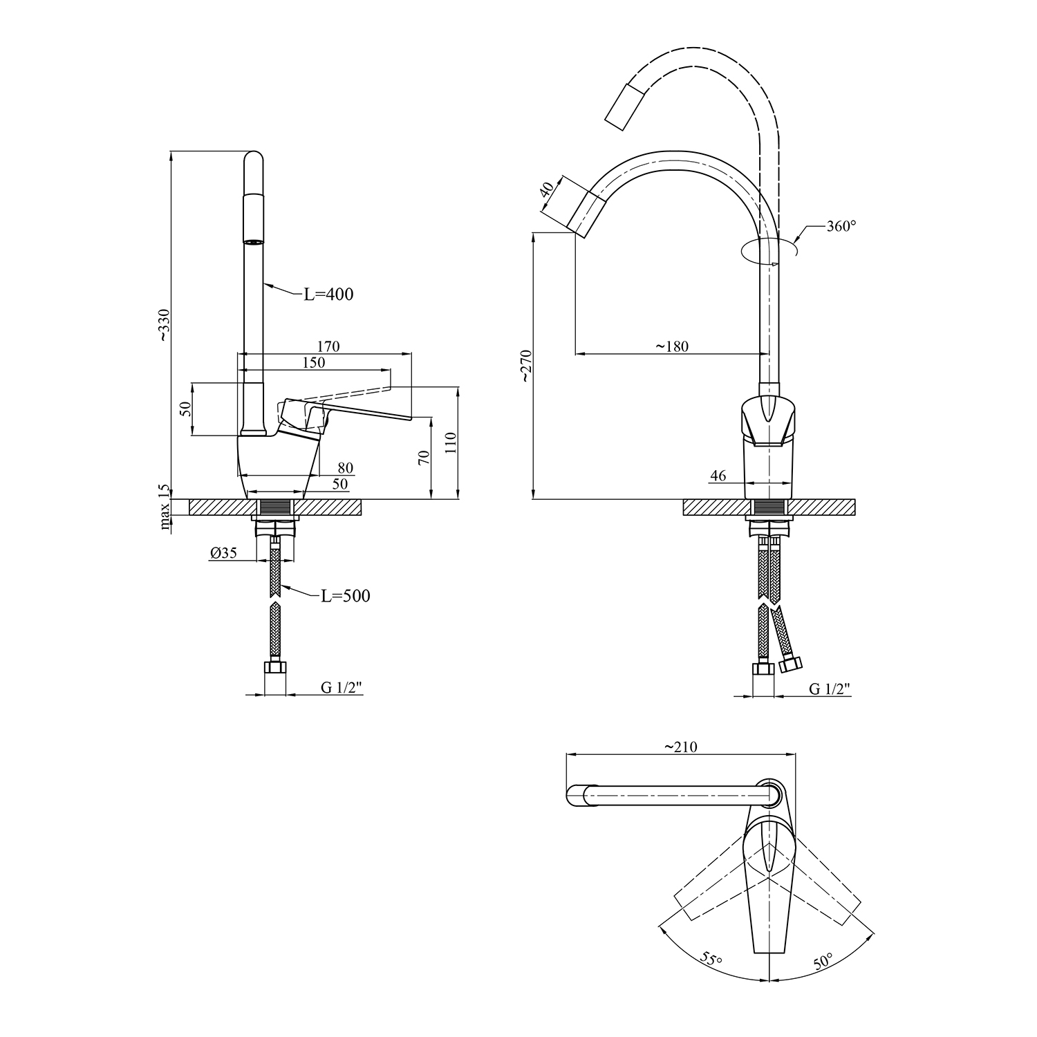 - Длина излива: 230 мм