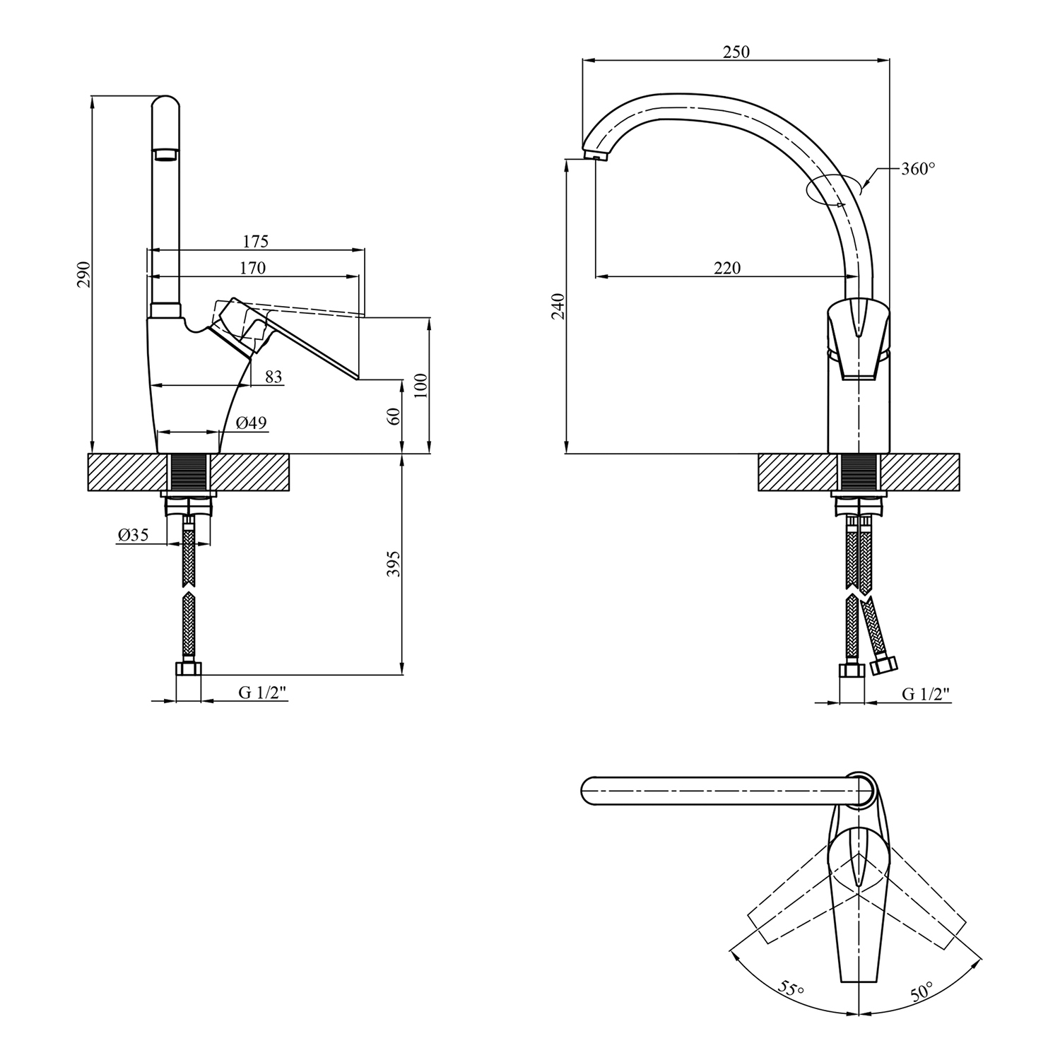 Смеситель, гибкая подводка, крепёж, инструкция.