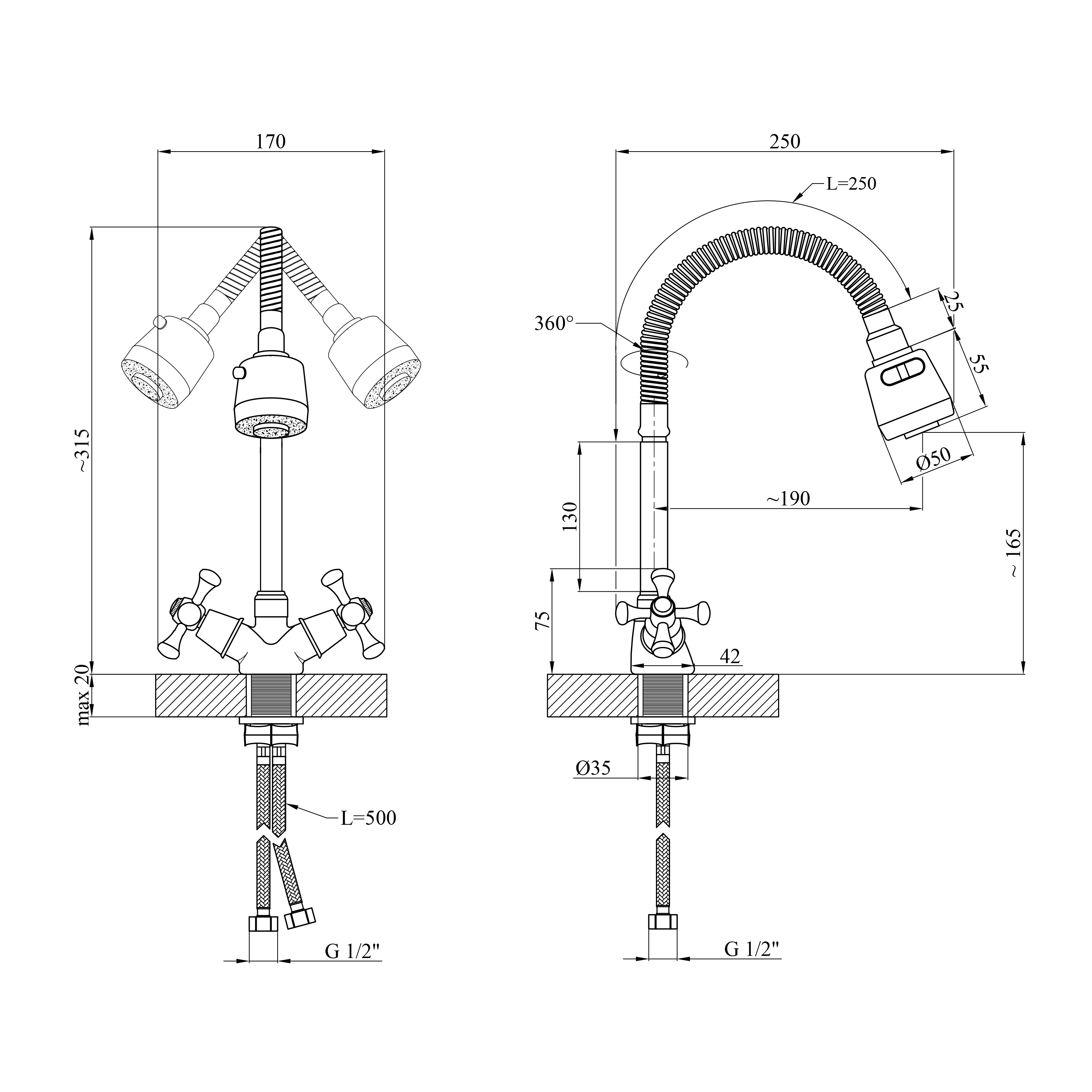- Высота излива: 200 мм