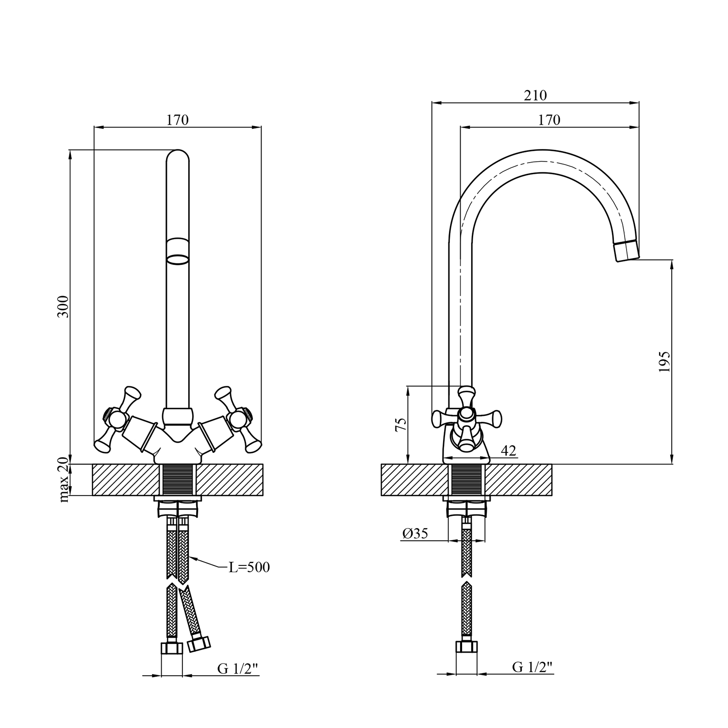 - Высота излива: 200 мм