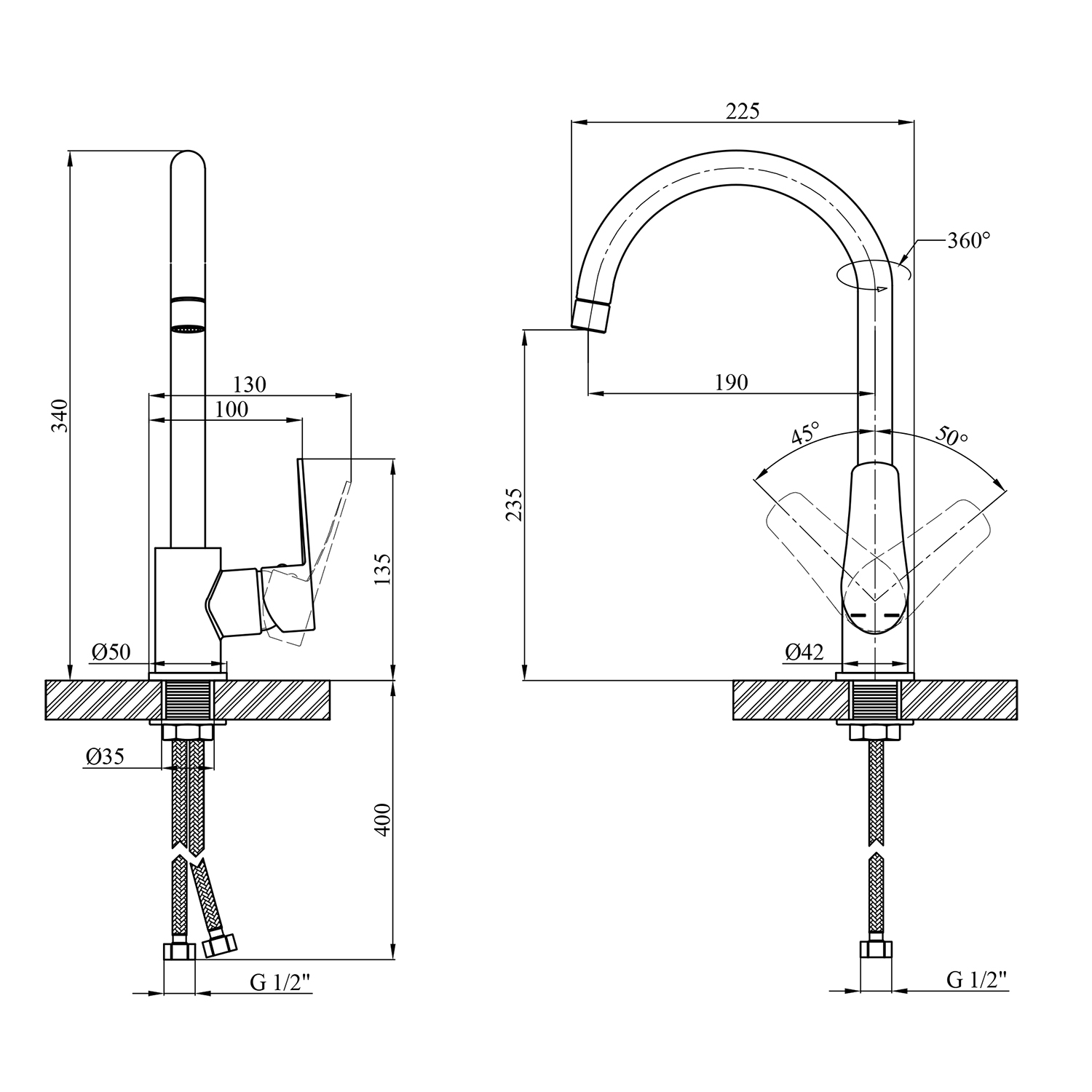 - Высота излива: 200 мм