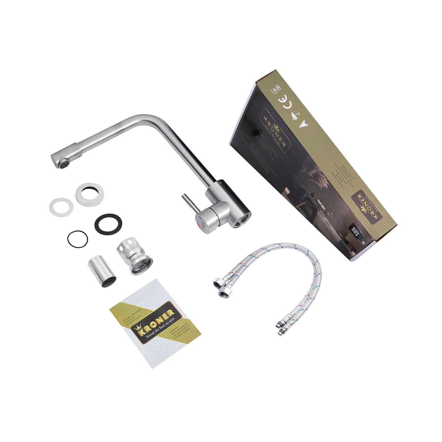 Смеситель Kroner KRP – это выбор, который говорит сам за себя. Надежность и качество. Каждый элемент продуман до мелочей. Устойчив к коррозии. Легко чистится. Идеальный баланс между формой и функцией. Ваш идеальный помощник на кухне.