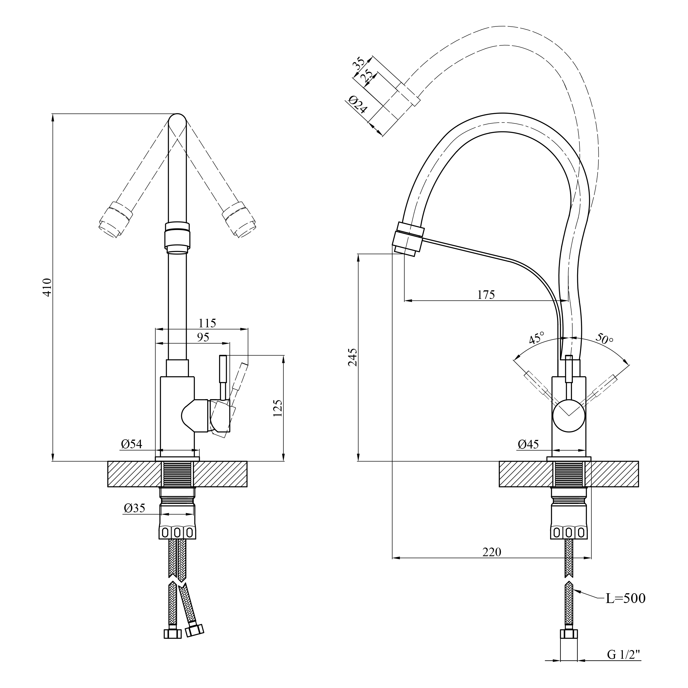 Описание Смеситель для кухни Kroner KRP Edelstahl Klassisch - ESG03593BLK код товару CV035453