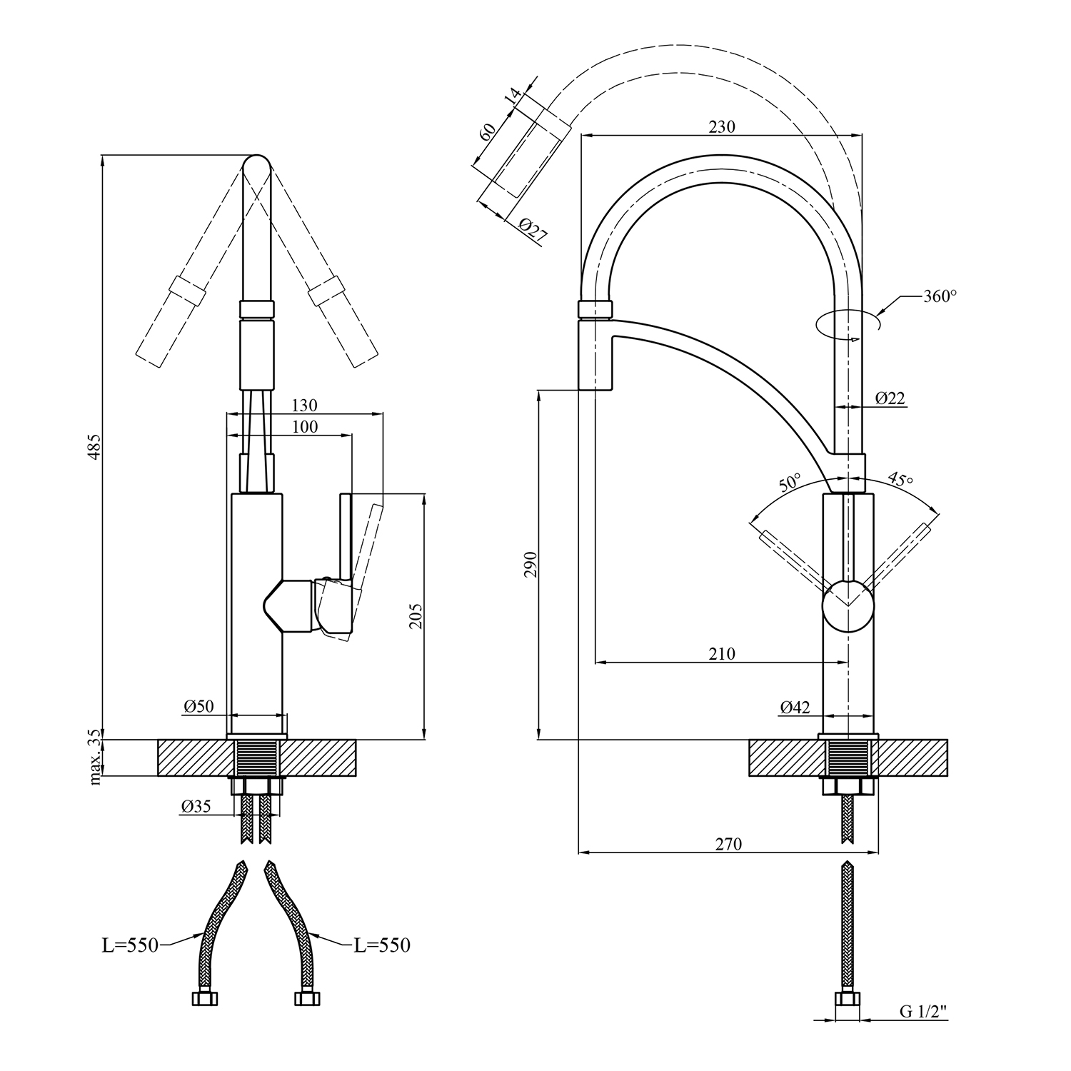 Описание Смеситель для кухни Kroner KRP Ersel C03900BLK код товару CV033801