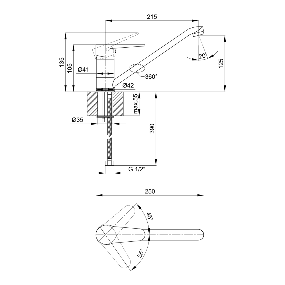 - Высота излива: 20 см
