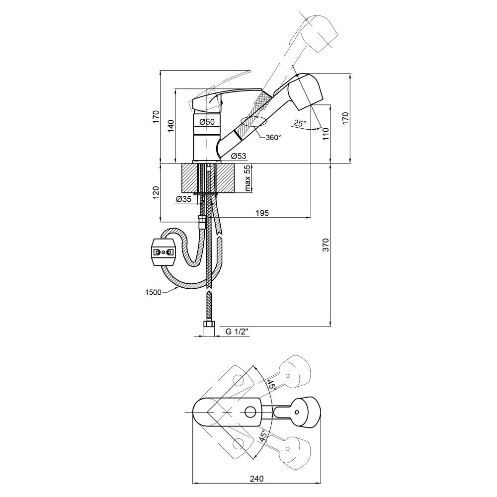 - Длина гибкой подводки - 370 мм.