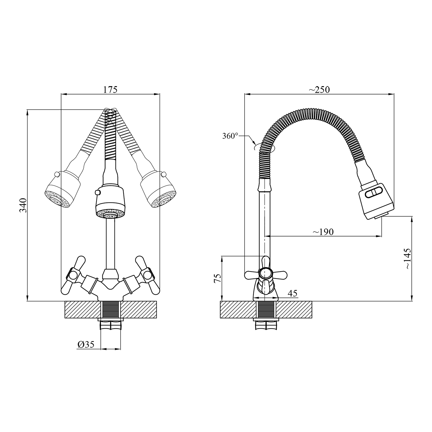 - Излив: гибкий, длина 360 мм