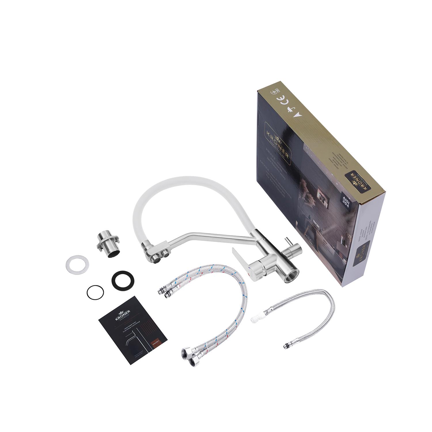 Смеситель Kroner KRP — это не просто кран. Это решение. Это стиль. Это функциональность. Нержавеющая сталь, блестящая, как звезды. Фильтр, который очищает, как свежий ветер. Удобство в каждом движении. Легкость в использовании. Идеально для любой кухни. Не упустите шанс сделать свою жизнь проще. Установите смеситель и наслаждайтесь чистой водой каждый день.