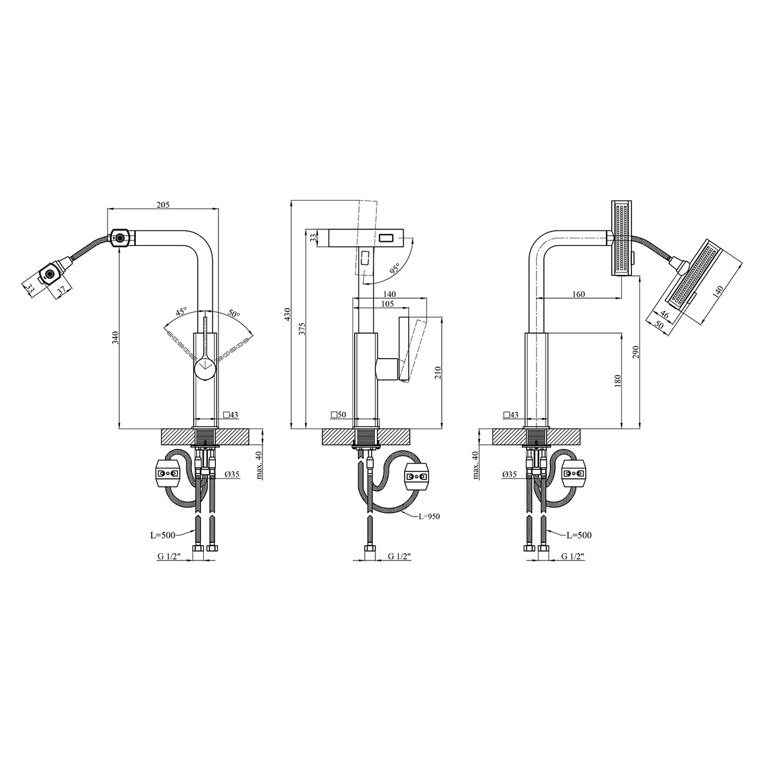 Выдвижной излив: Удобство в использовании. Легко направить поток воды туда, куда нужно. Идеально для мытья овощей и посуды.
