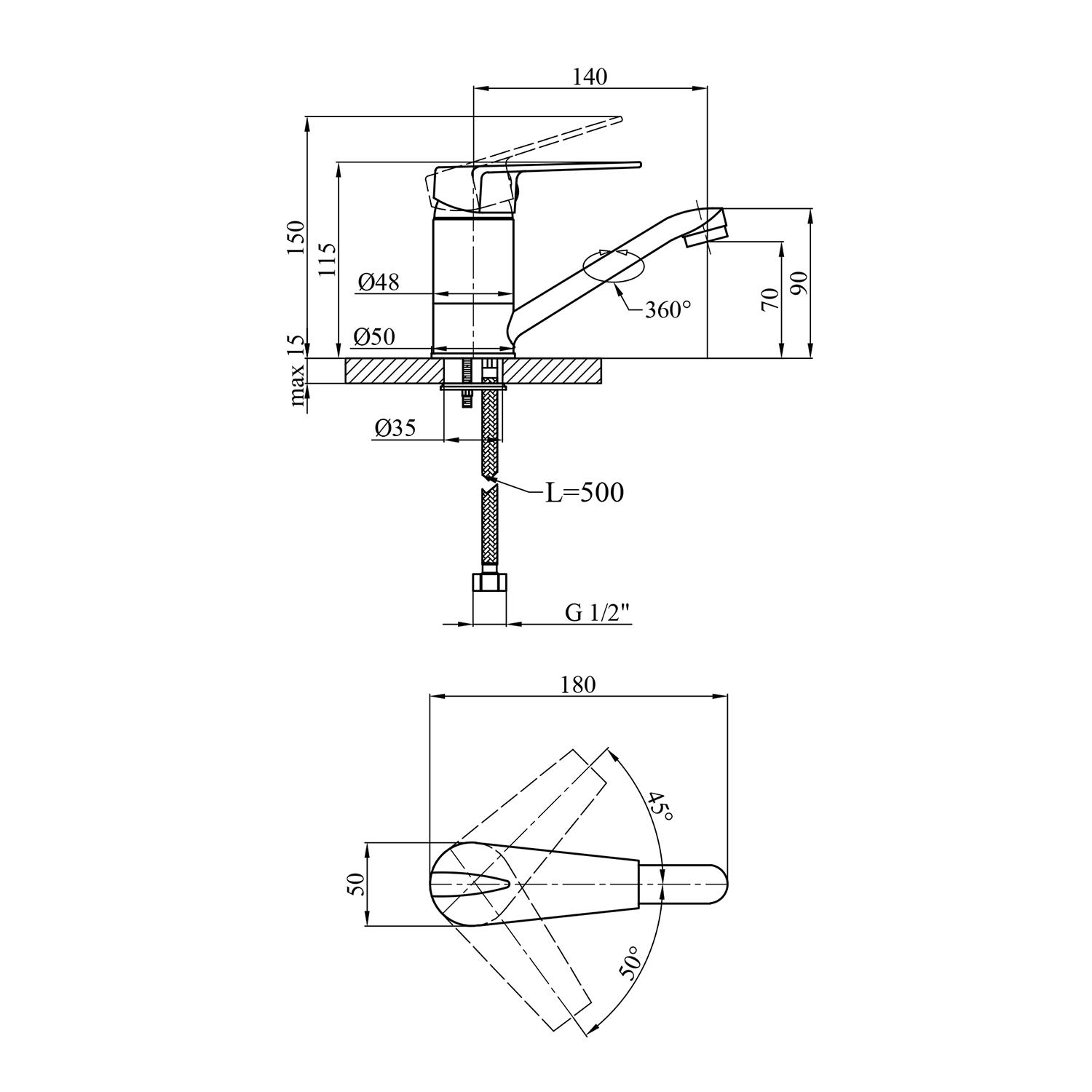Характеристики Смеситель Kroner KRM Odra - C012 для раковины код товару CV023578