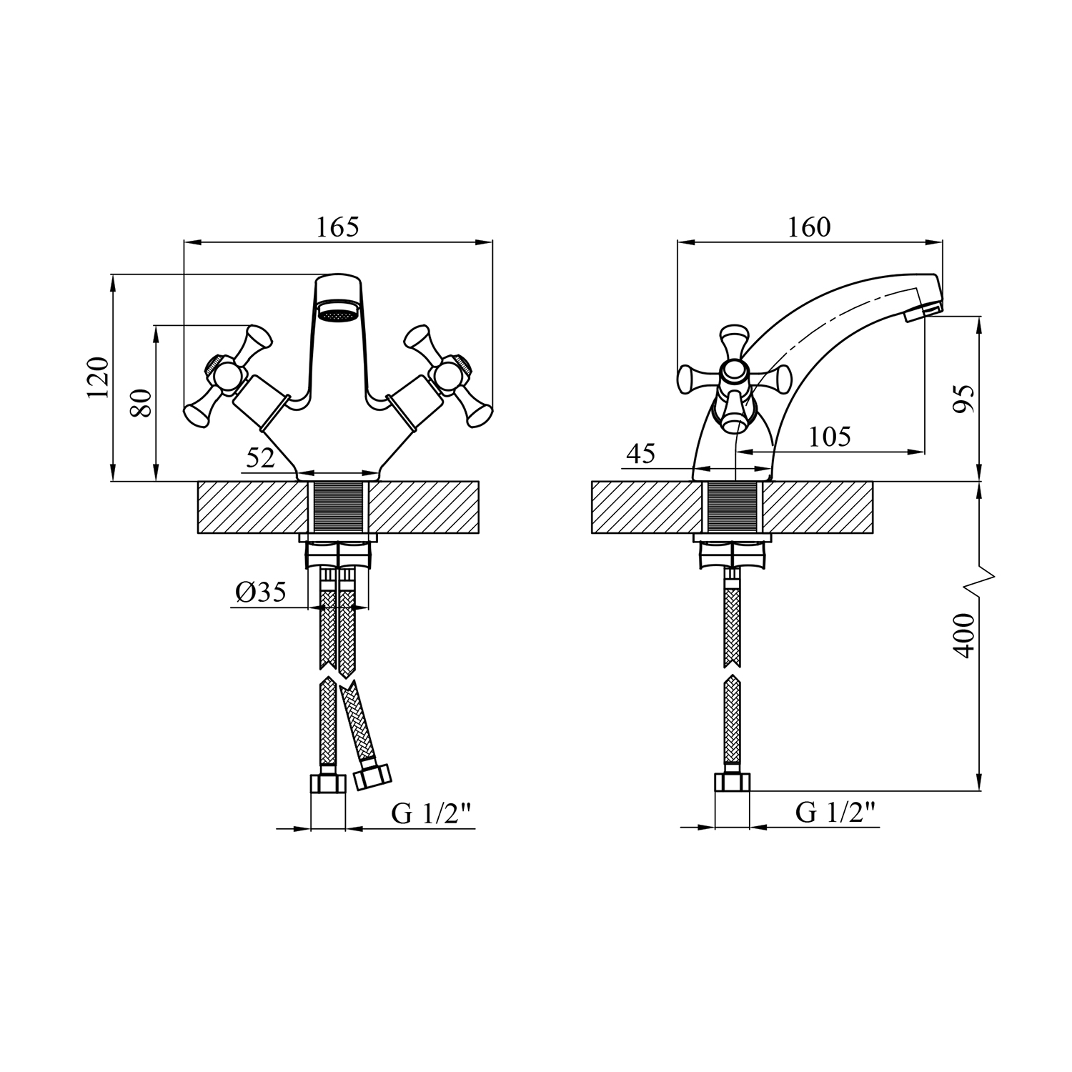 - Высота излива: 150 мм, подходит для большинства раковин.
