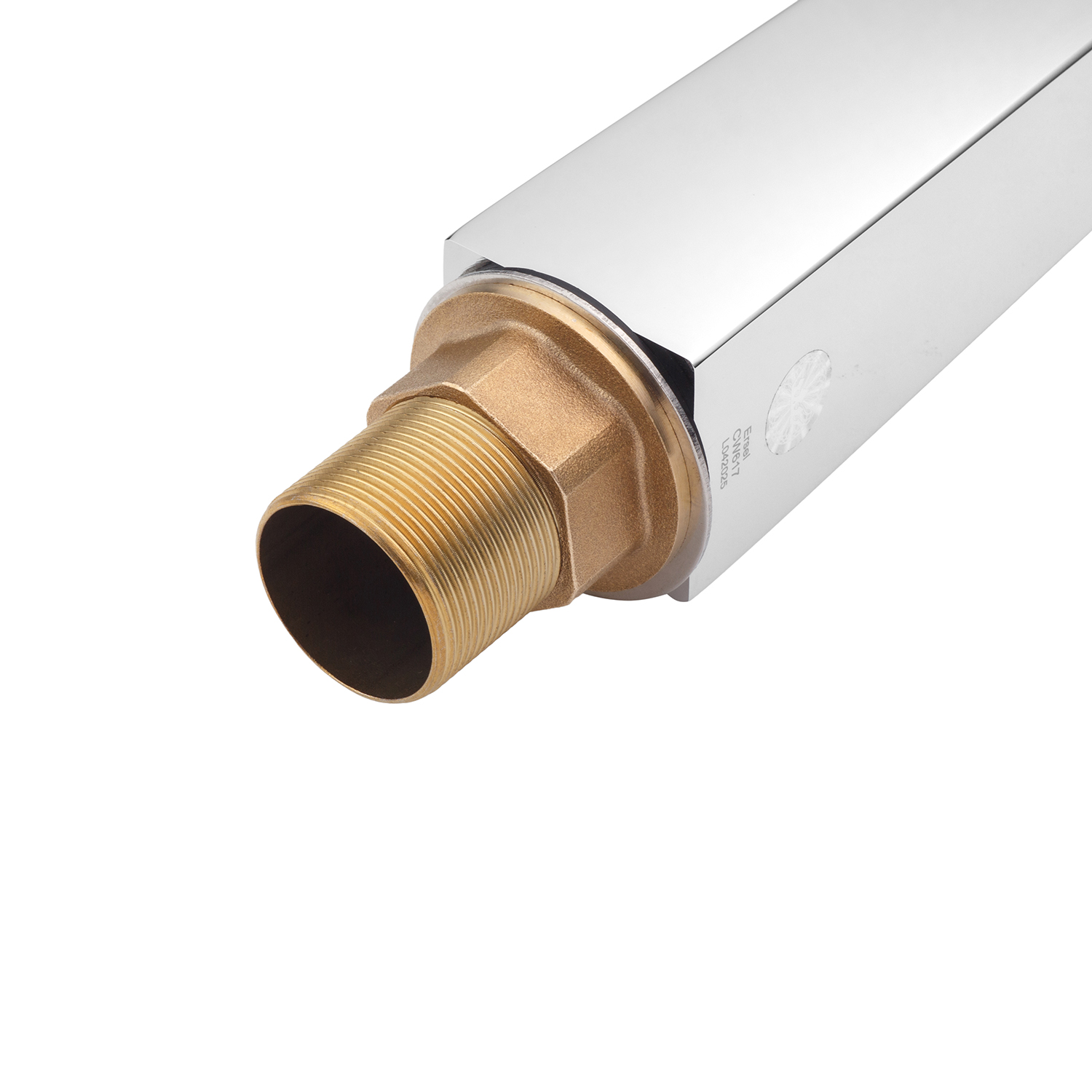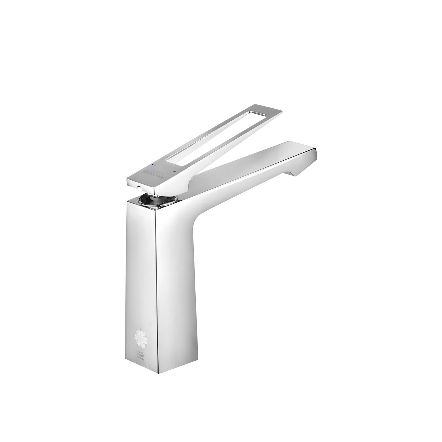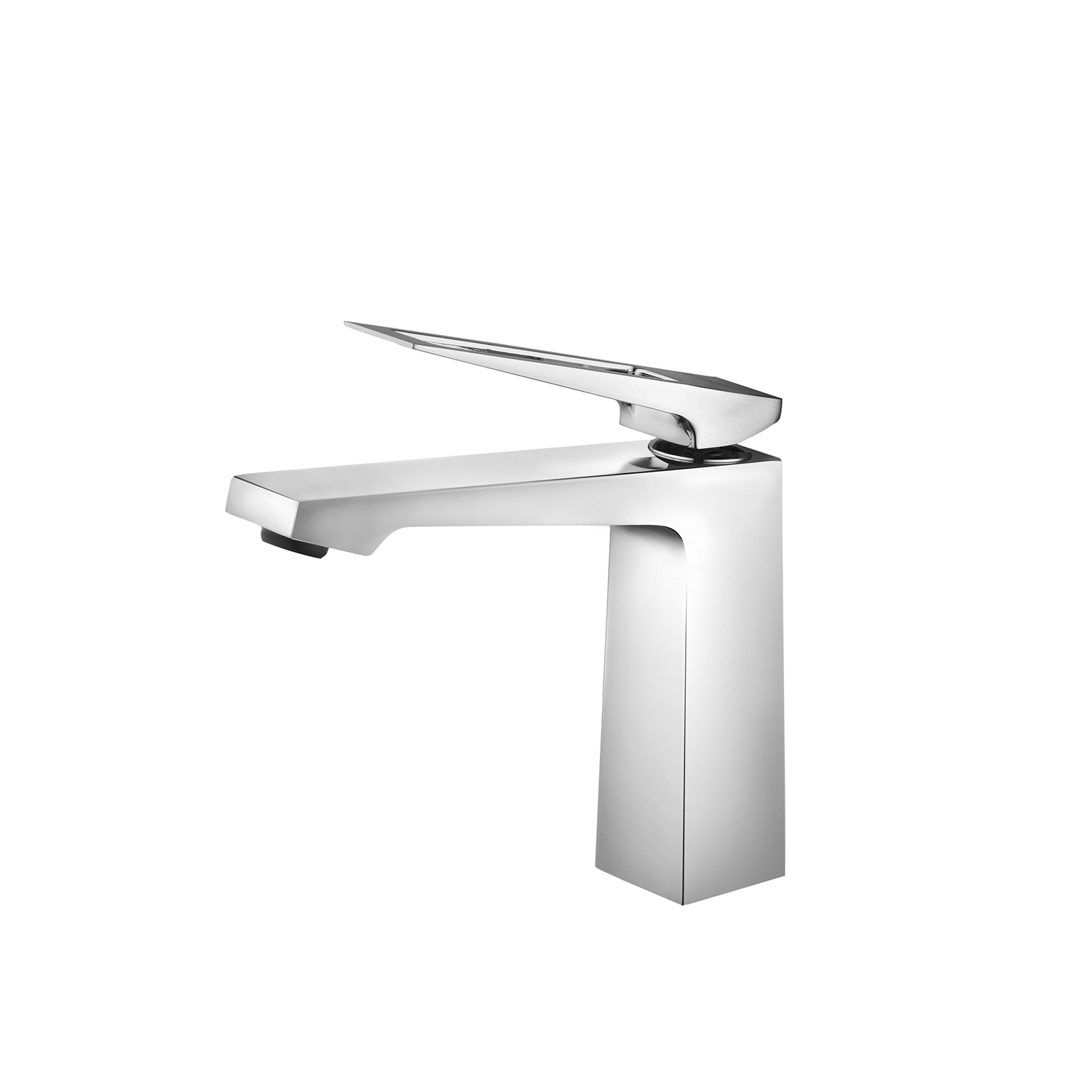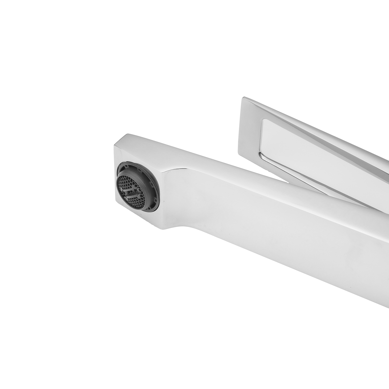 Смеситель выполнен из высококачественной латуни и имеет хромированное глянцевое покрытие, которое придает элегантности и обеспечивает стойкость к царапинам и коррозии. Минималистичная форма с четкими линиями гармонично сочетается с современными интерьерами ванной комнаты.
