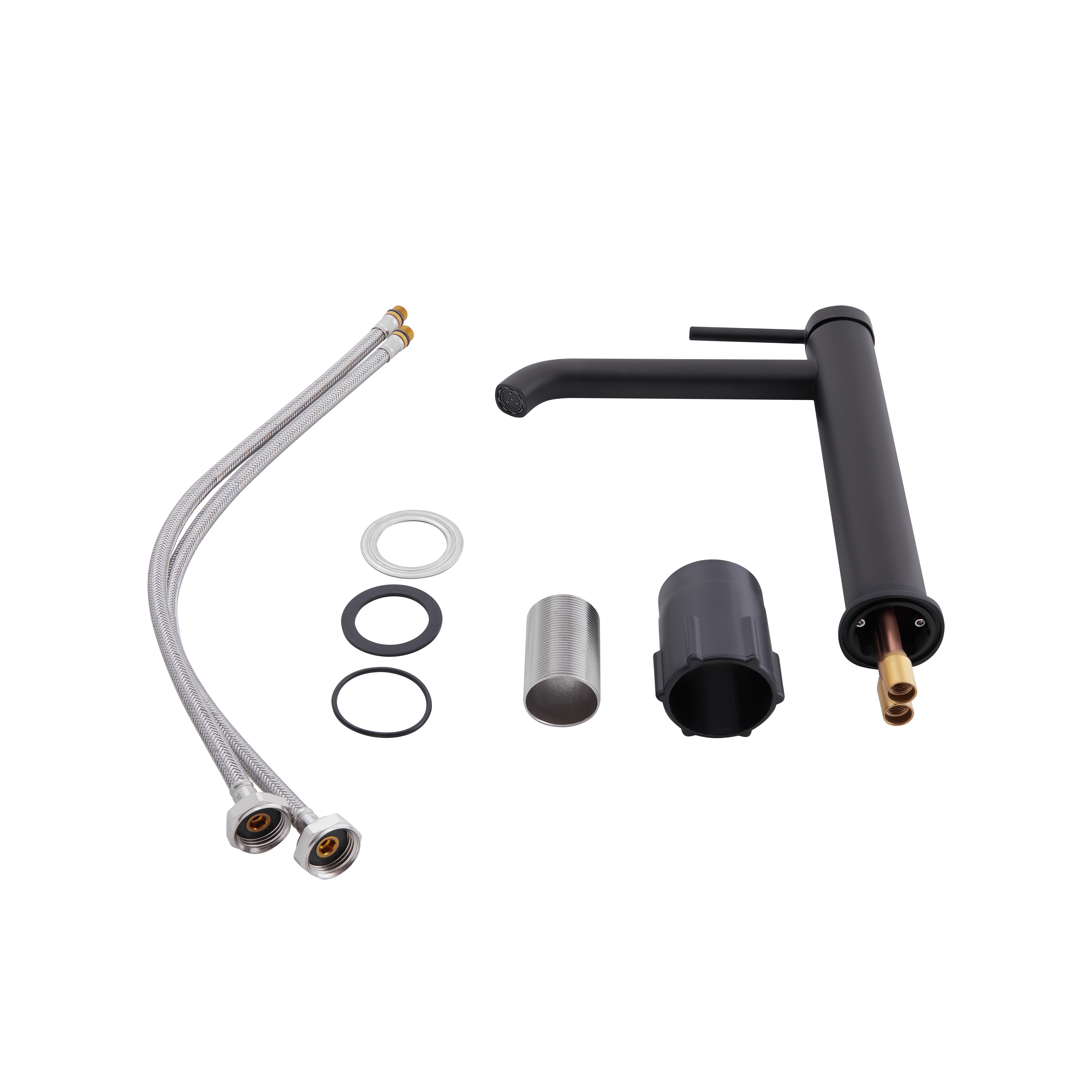 - Смеситель, гибкая подводка, крепеж.