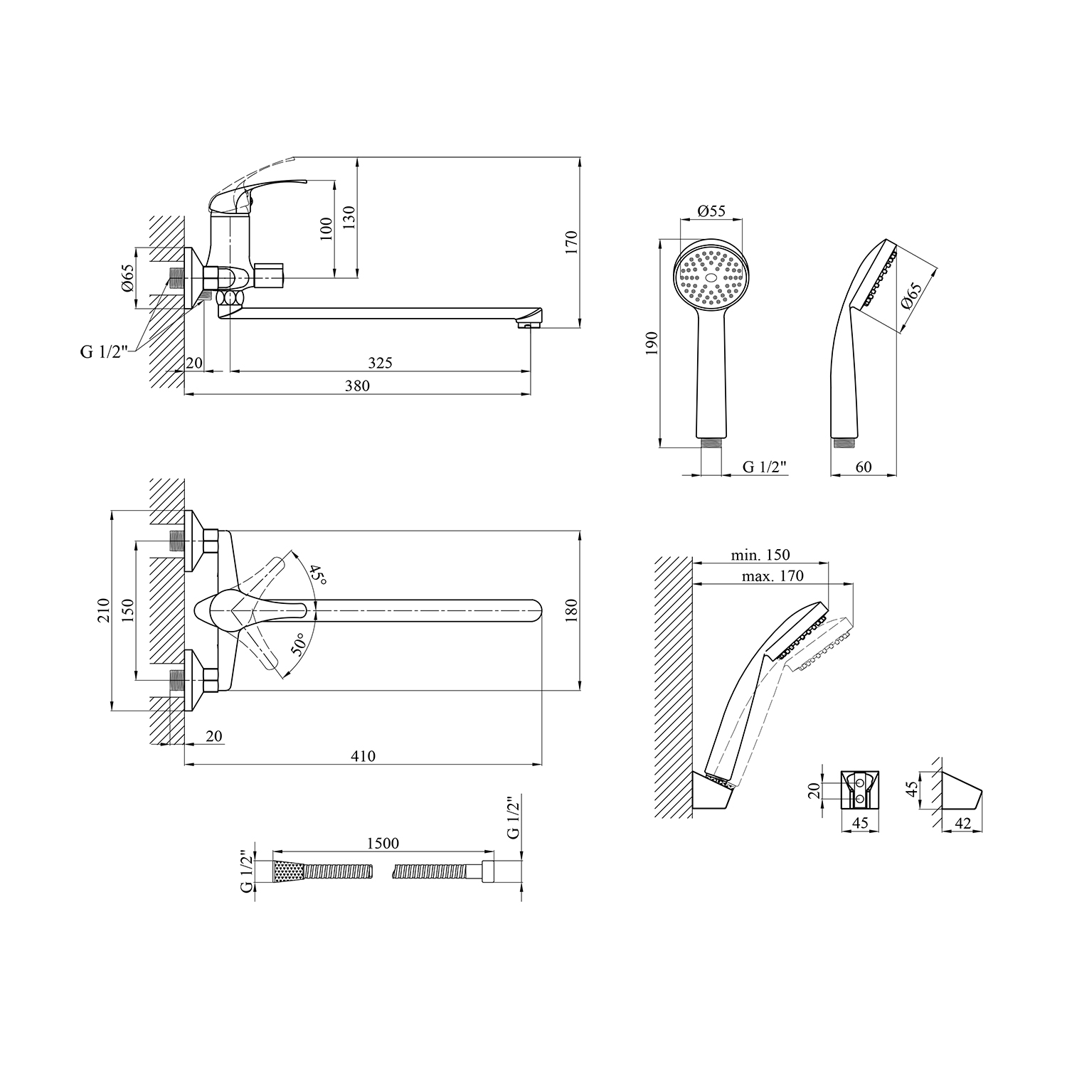 - Высота излива: 150 мм