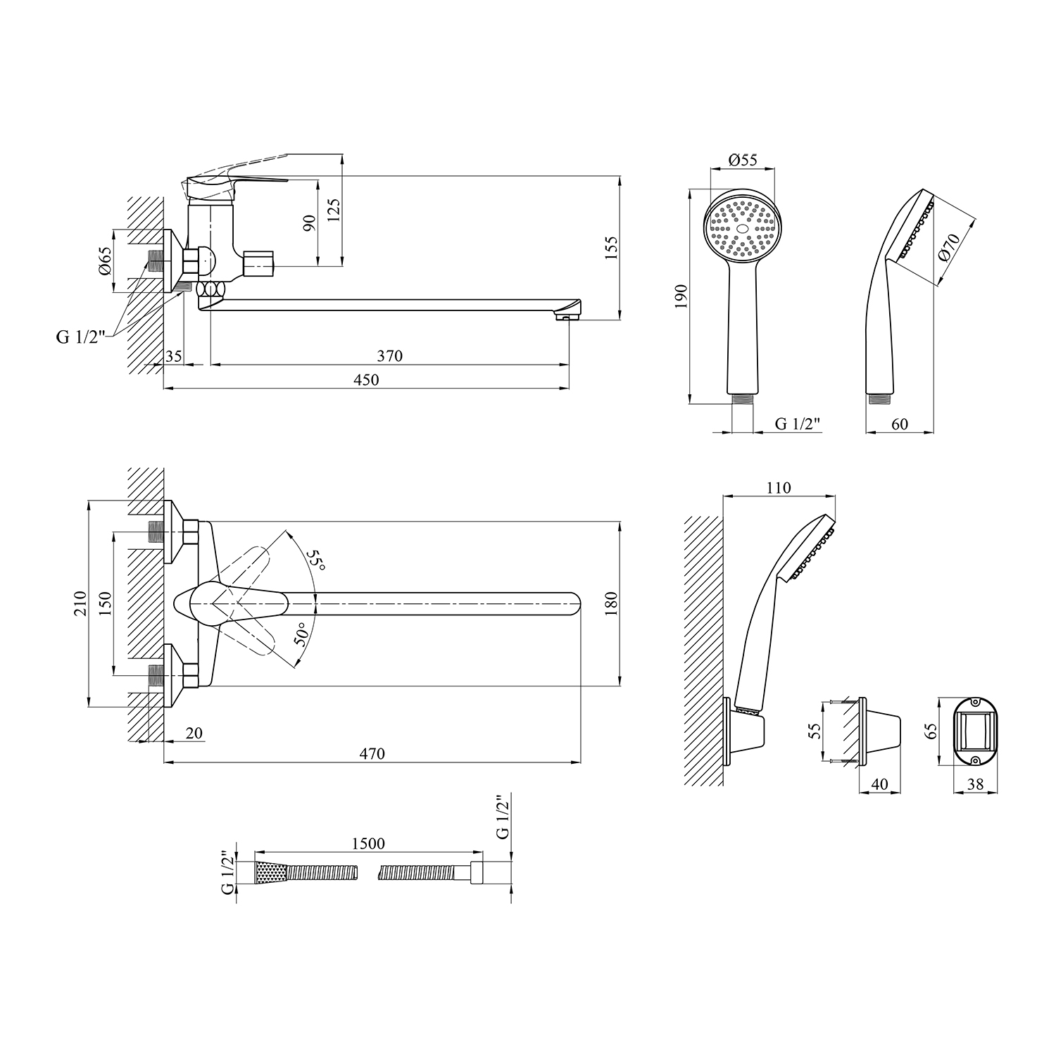 - Длина излива: 120 мм