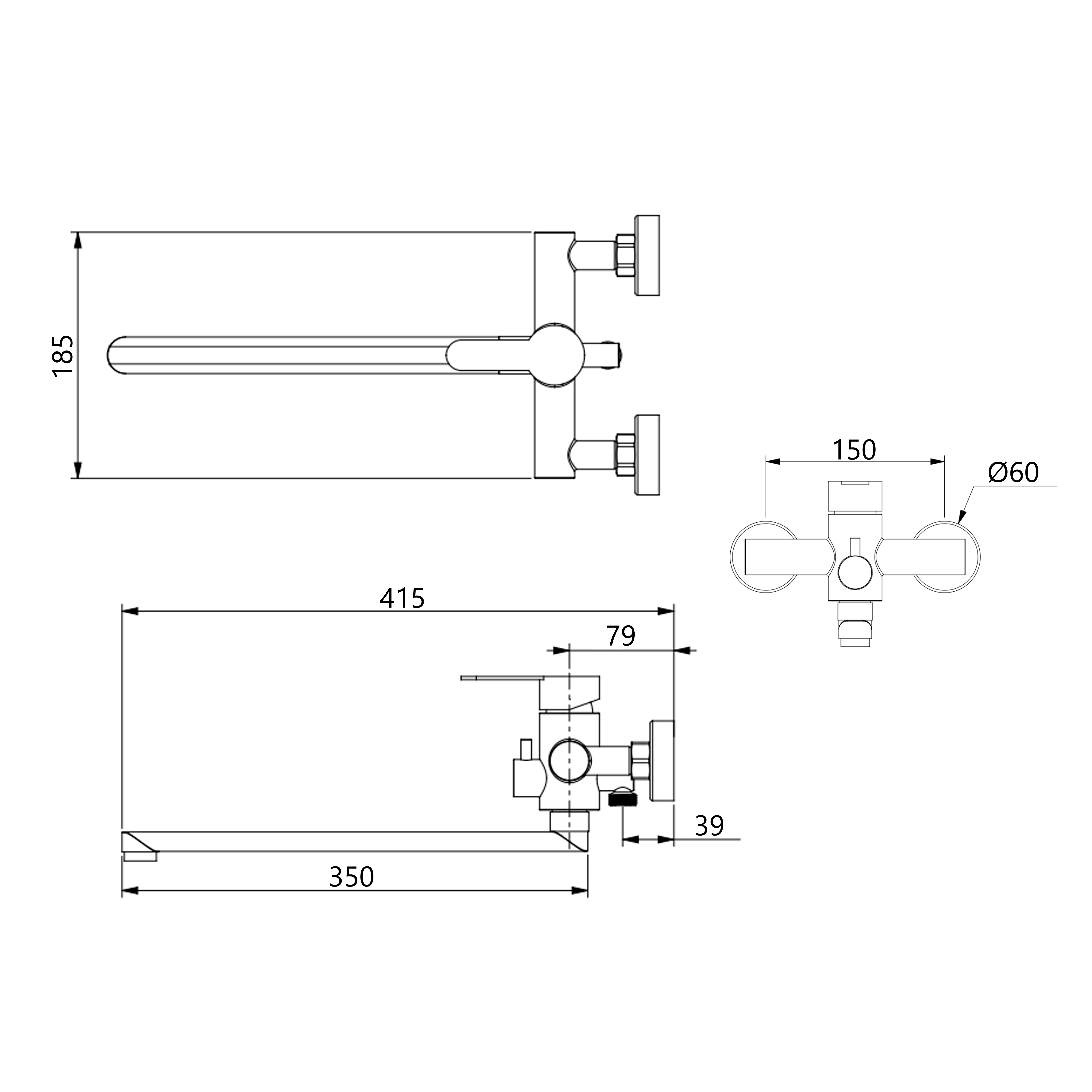 - Тип: смеситель для ванны с душевым гарнитуром