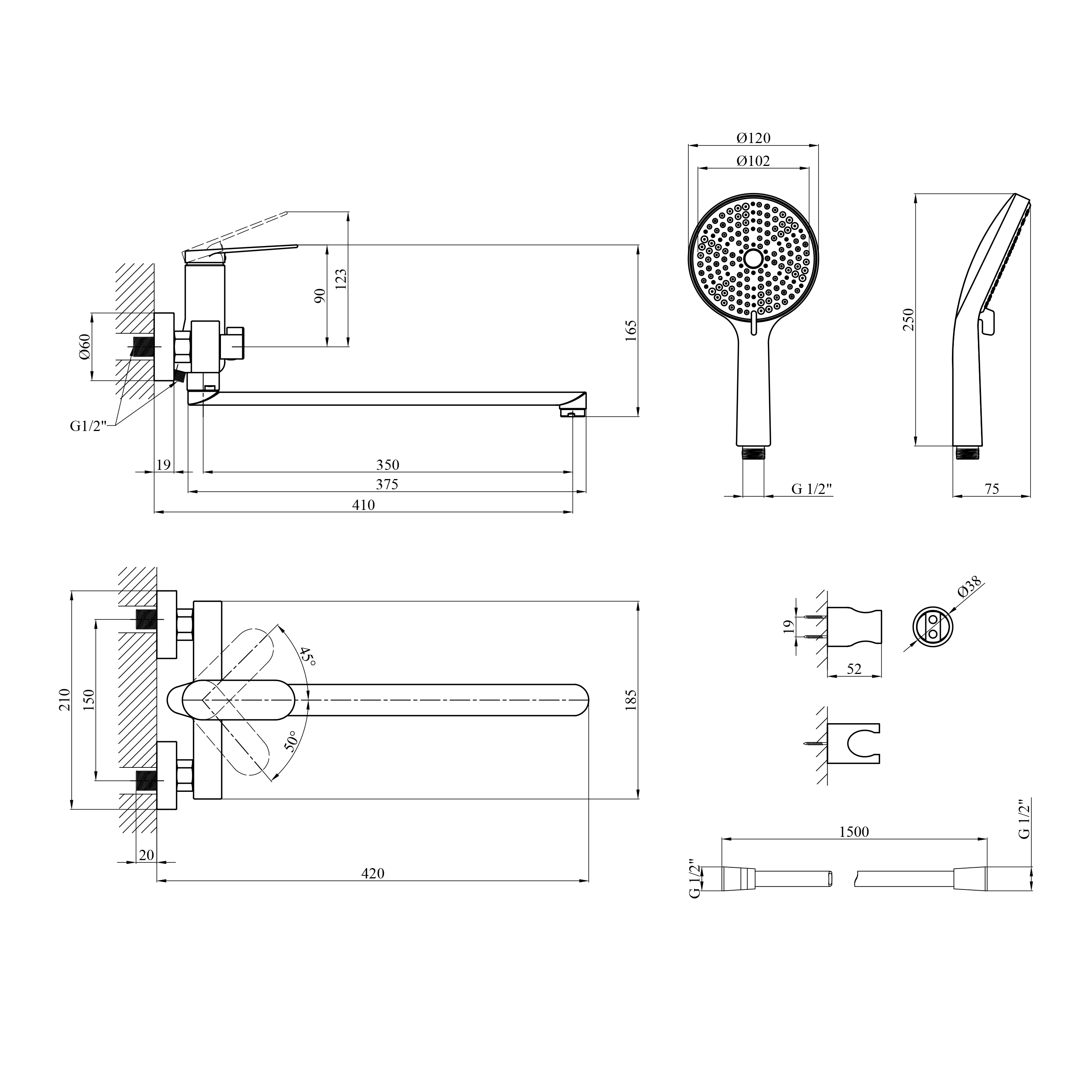 Длинный излив обеспечивает удобство при наполнении ванны, а душевая лейка с тремя режимами подачи воды позволяет выбрать оптимальный поток — от мягкого расслабляющего до более интенсивного. Плавный ход рычага обеспечивает точную регулировку температуры и напора воды, создавая комфорт при каждом использовании.
