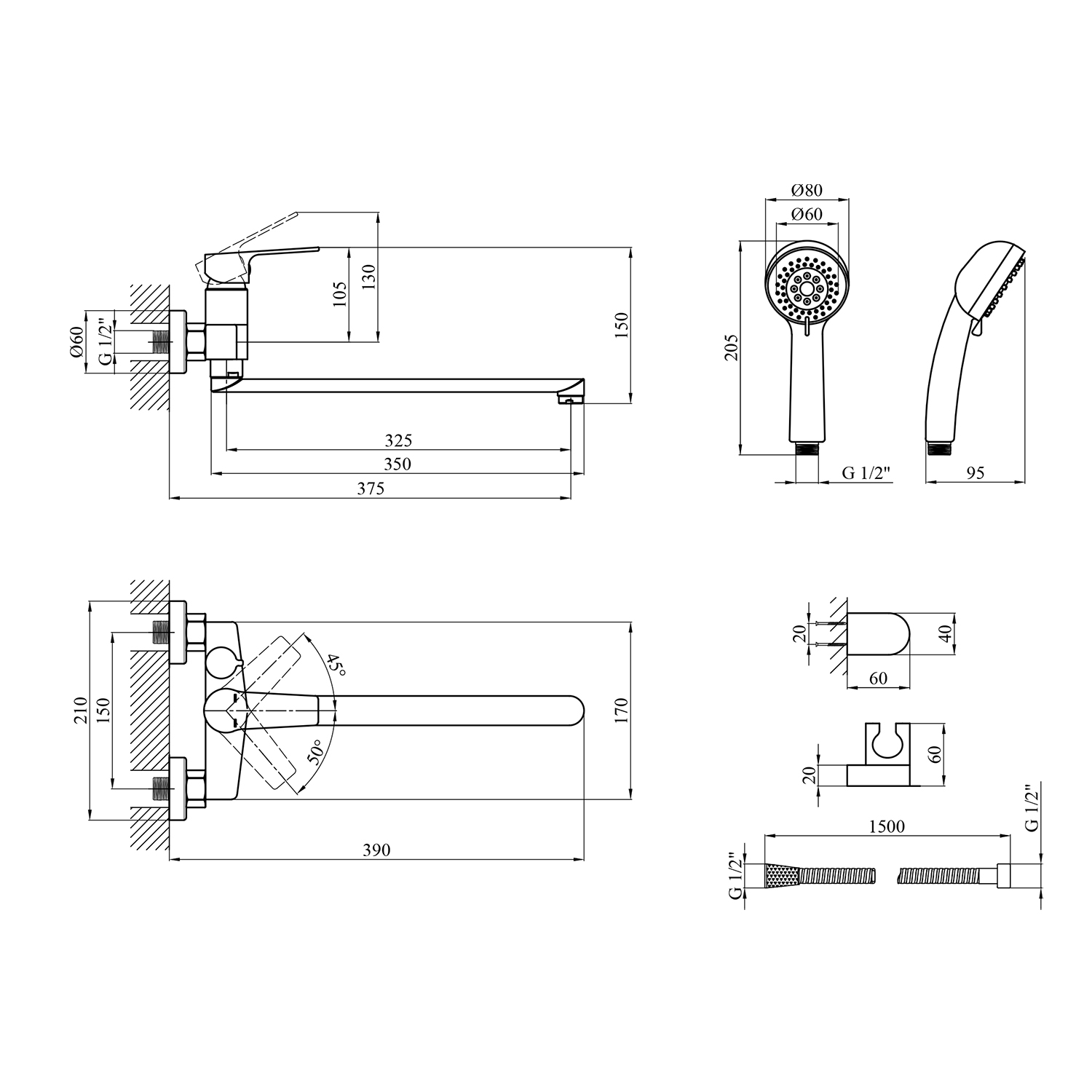 - Комплектация: смеситель, крепеж, инструкция