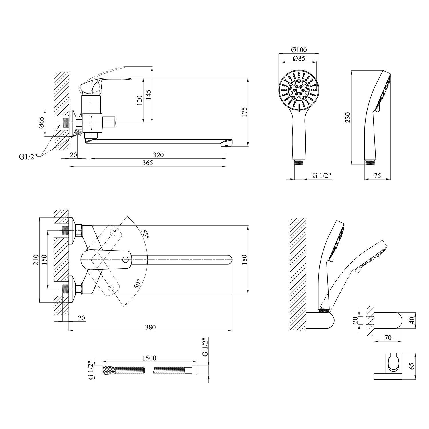 - Высота излива: 150 мм