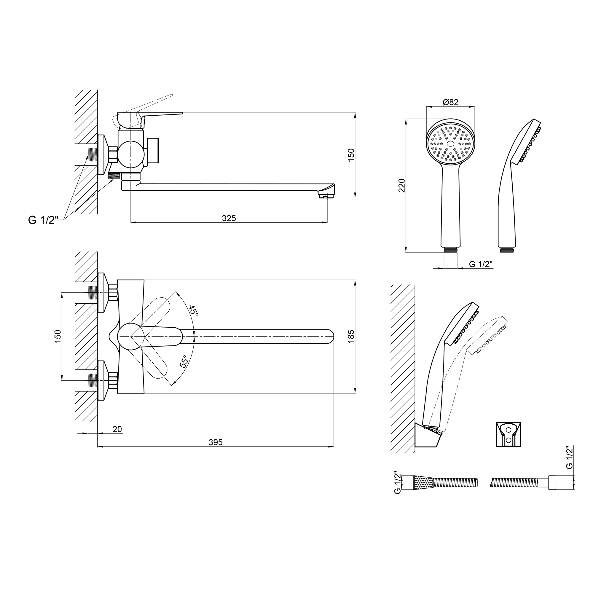 - Тип установки: настенный